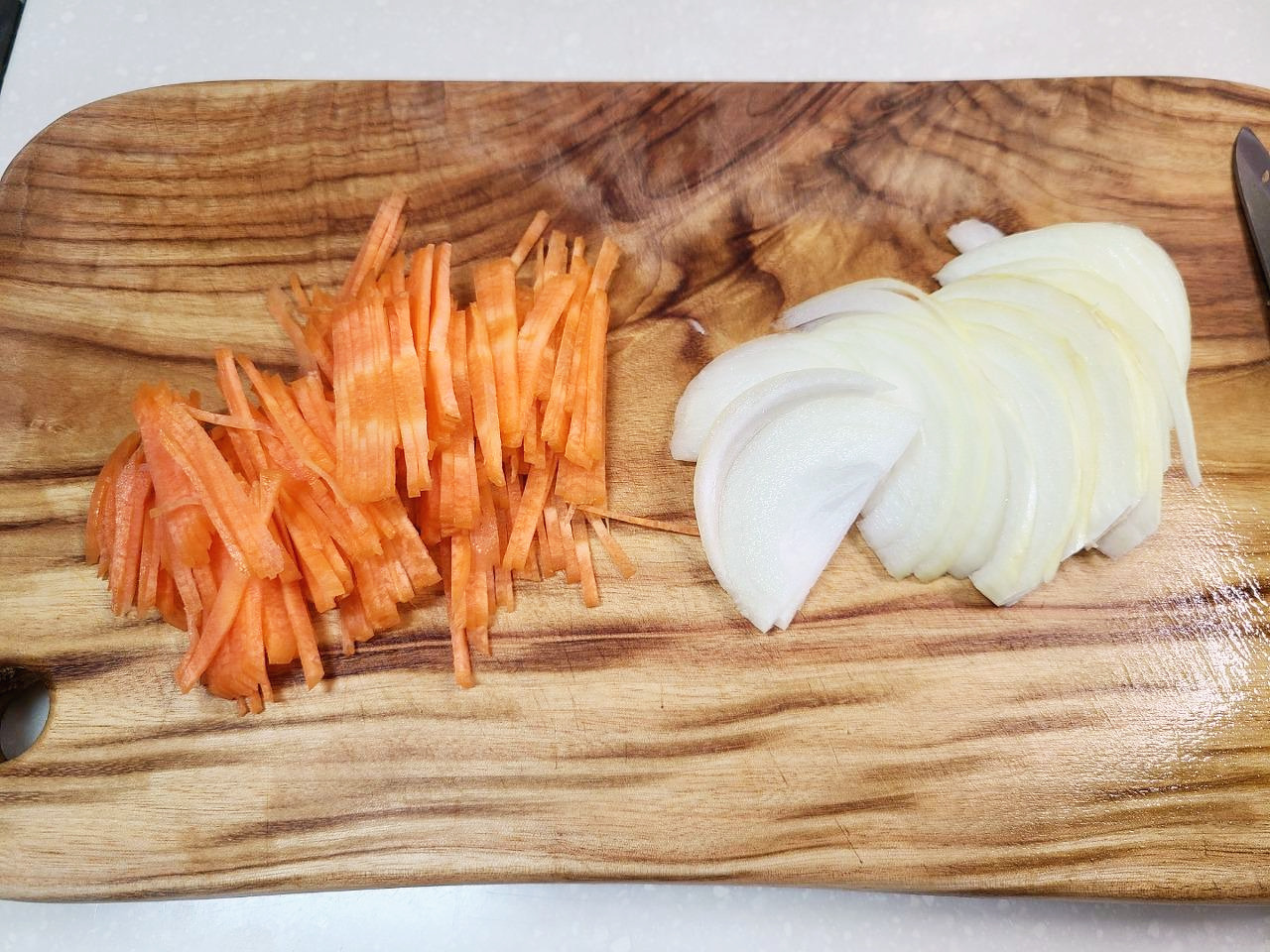 당근, 양파를 넣어서 잘 섞어 줍니다.