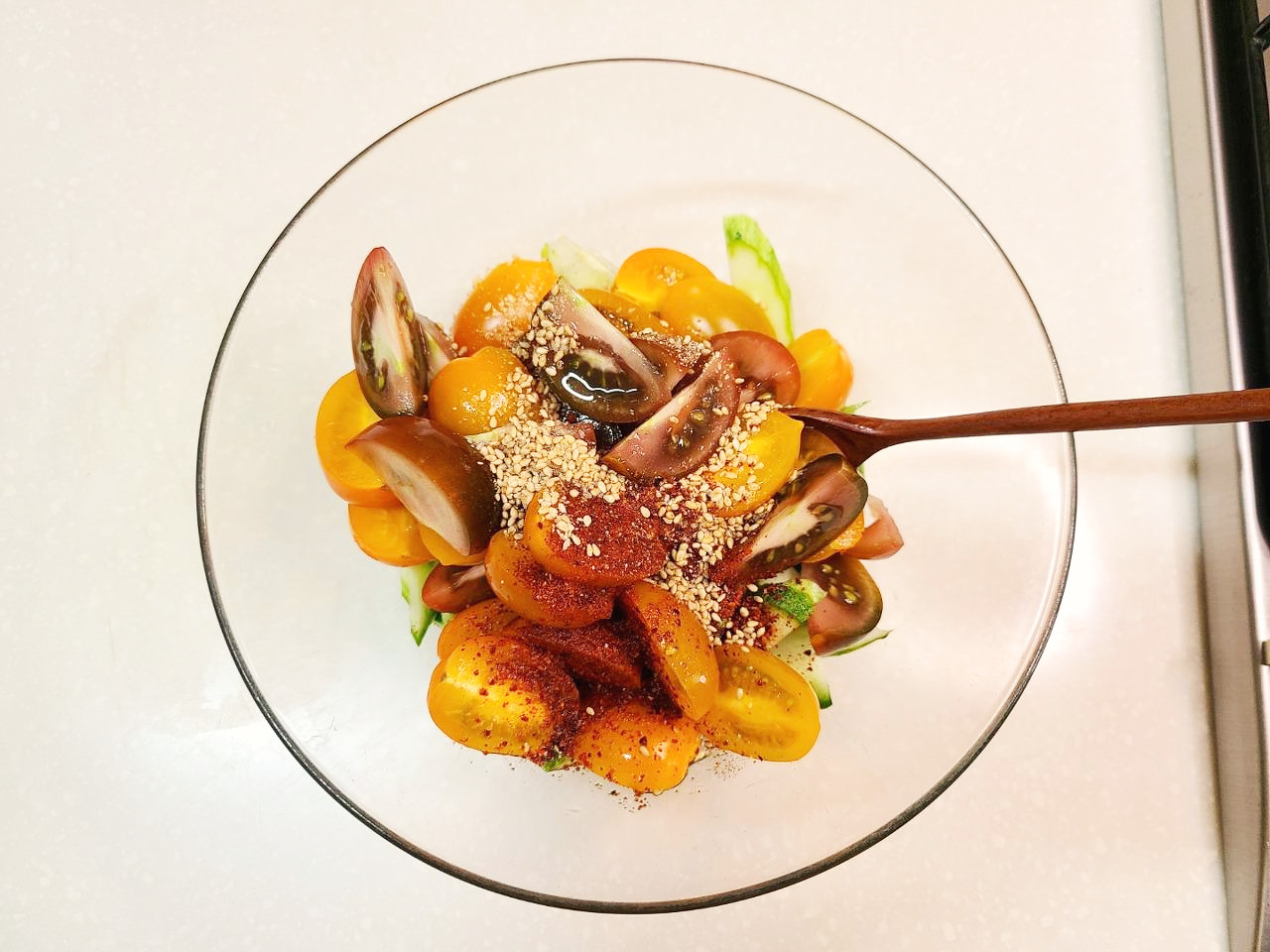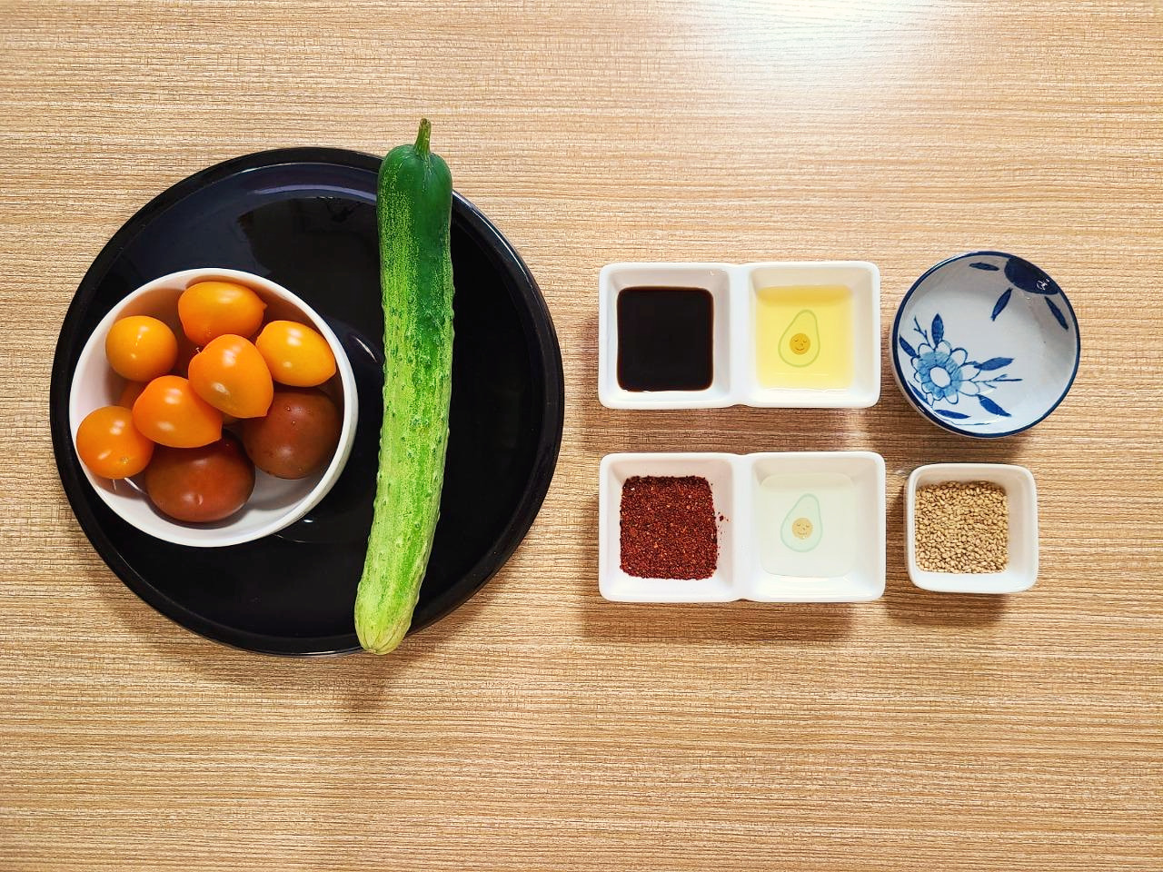 . 새콤달콤한 방울토마토를 사용해서 설탕 사용을 줄이고 오이를 넣어 아삭한 맛과 섬유질 섭취를 늘린다.