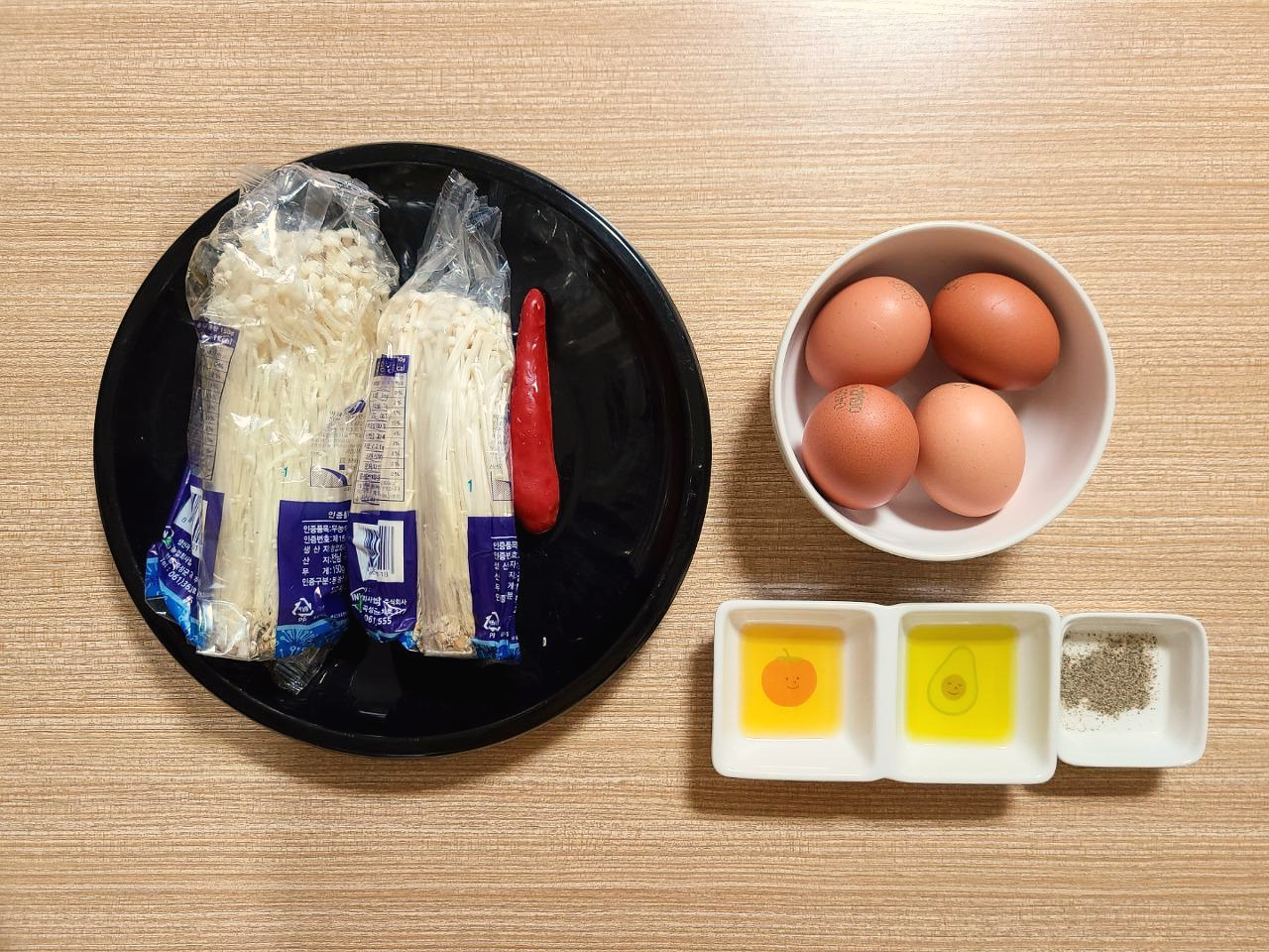 저희 어머님은 전을 참 좋아하세요. 그런데 밀가루가 많이 든 전을 많이 드시면 당뇨 관리에 좋지 않아 팽이버섯, 달걀로만 부쳐낸 다이어트 팽이버섯전을 만들어 드렸어요.