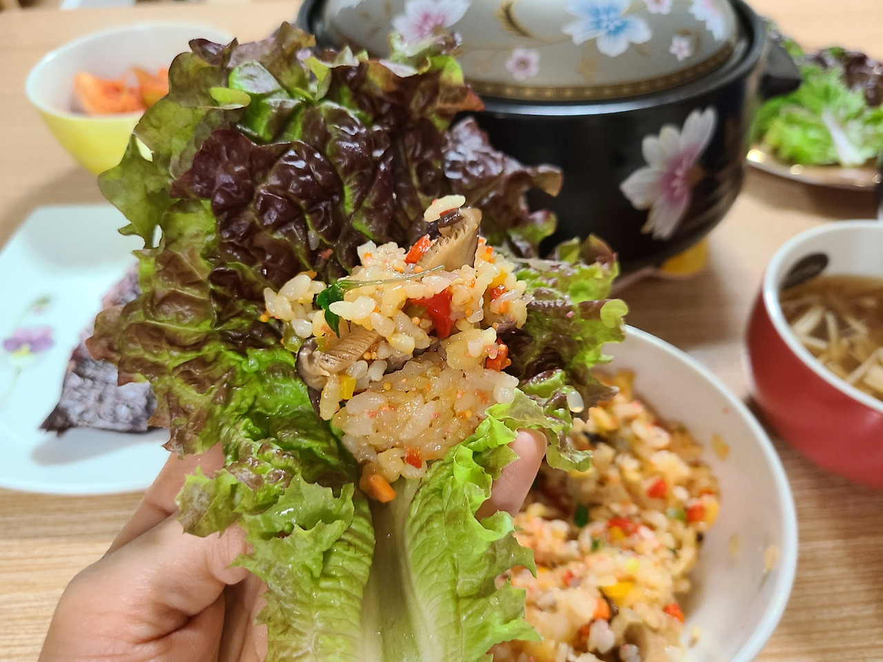 어머님은 맨김에 싸서 양념장에 콕 찍어드시거나 상추에 싸서 맛있게 드셨어요. 날치알이 원래 조미가 돼 있는 식품이라서 그런지 따로 간 안 해도 심심하니 좋다고 하셨어요.