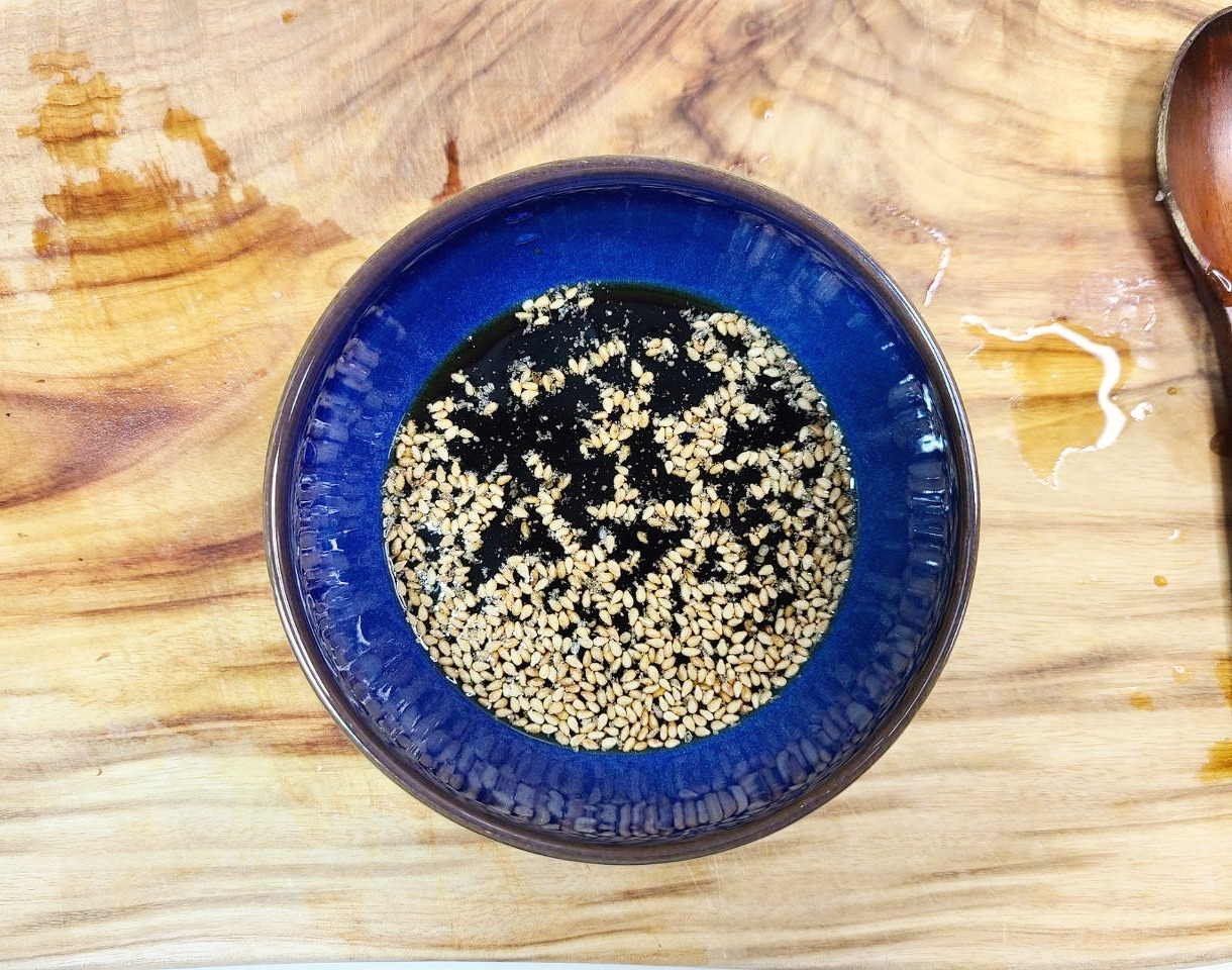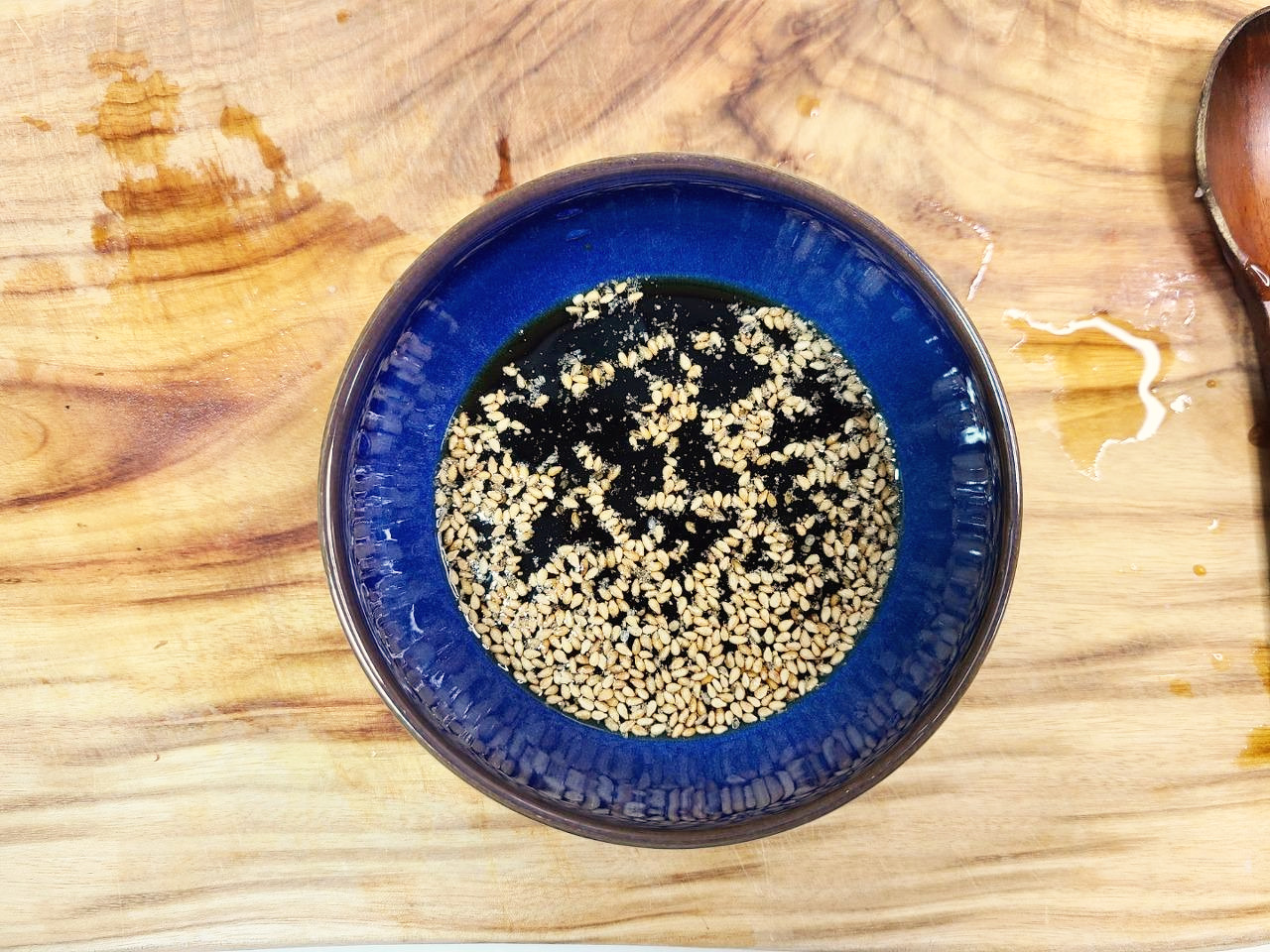 양념장 - 양조간장 1/4T, 식초 1/2T, 물 3T, 깨소금 조금