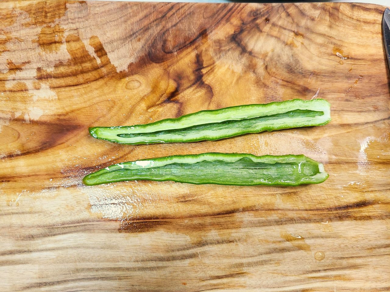오이고추는 심지와 씨를 제거한다음 쫑쫑 썰어주고,