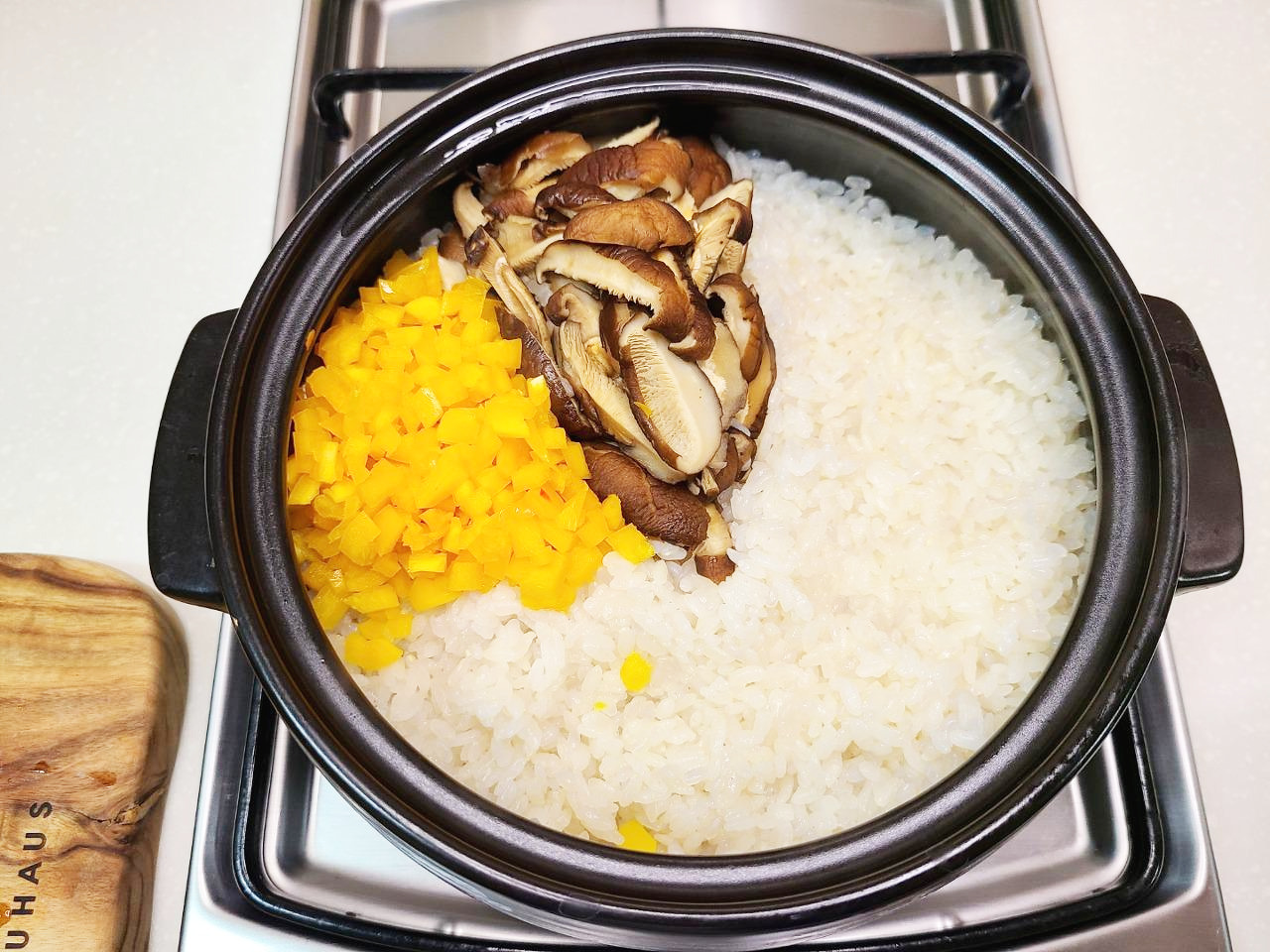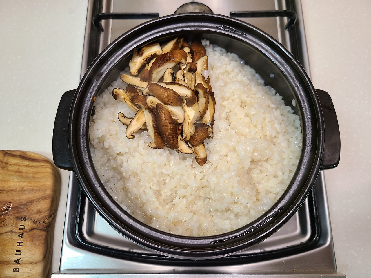 (밥 지을 때 표고 우린물이 필요하니 물은 360ml 이상 넣어주세요.)