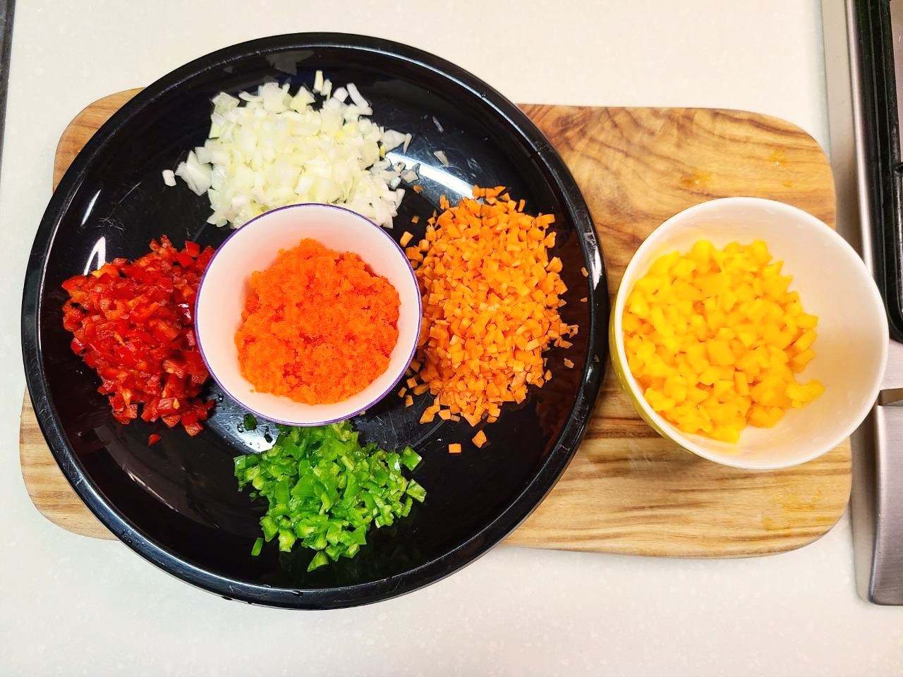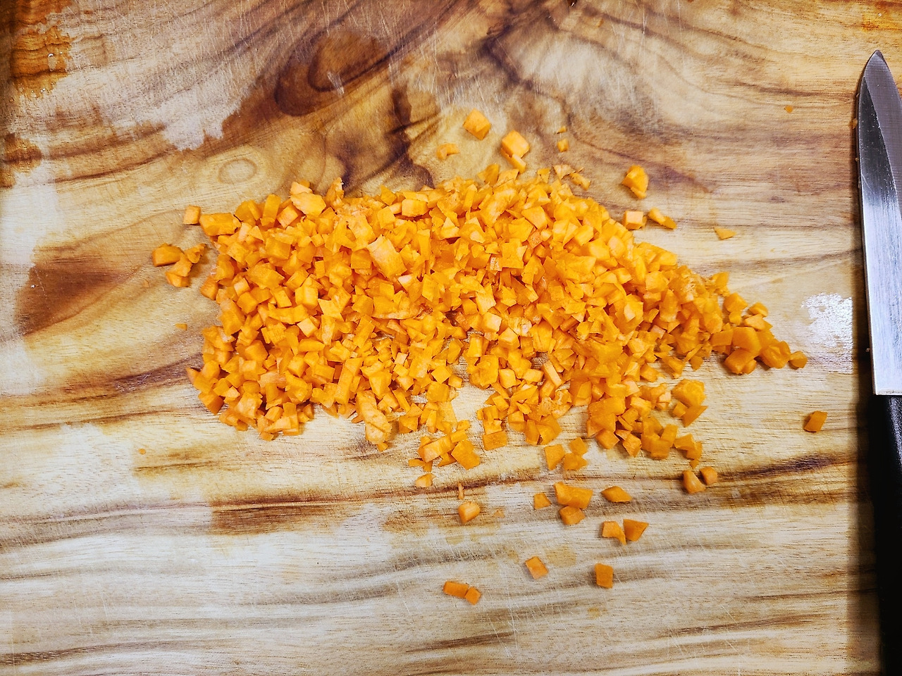 양파, 당근은 볶음밥용으로 잘게 다져 준비해주세요.