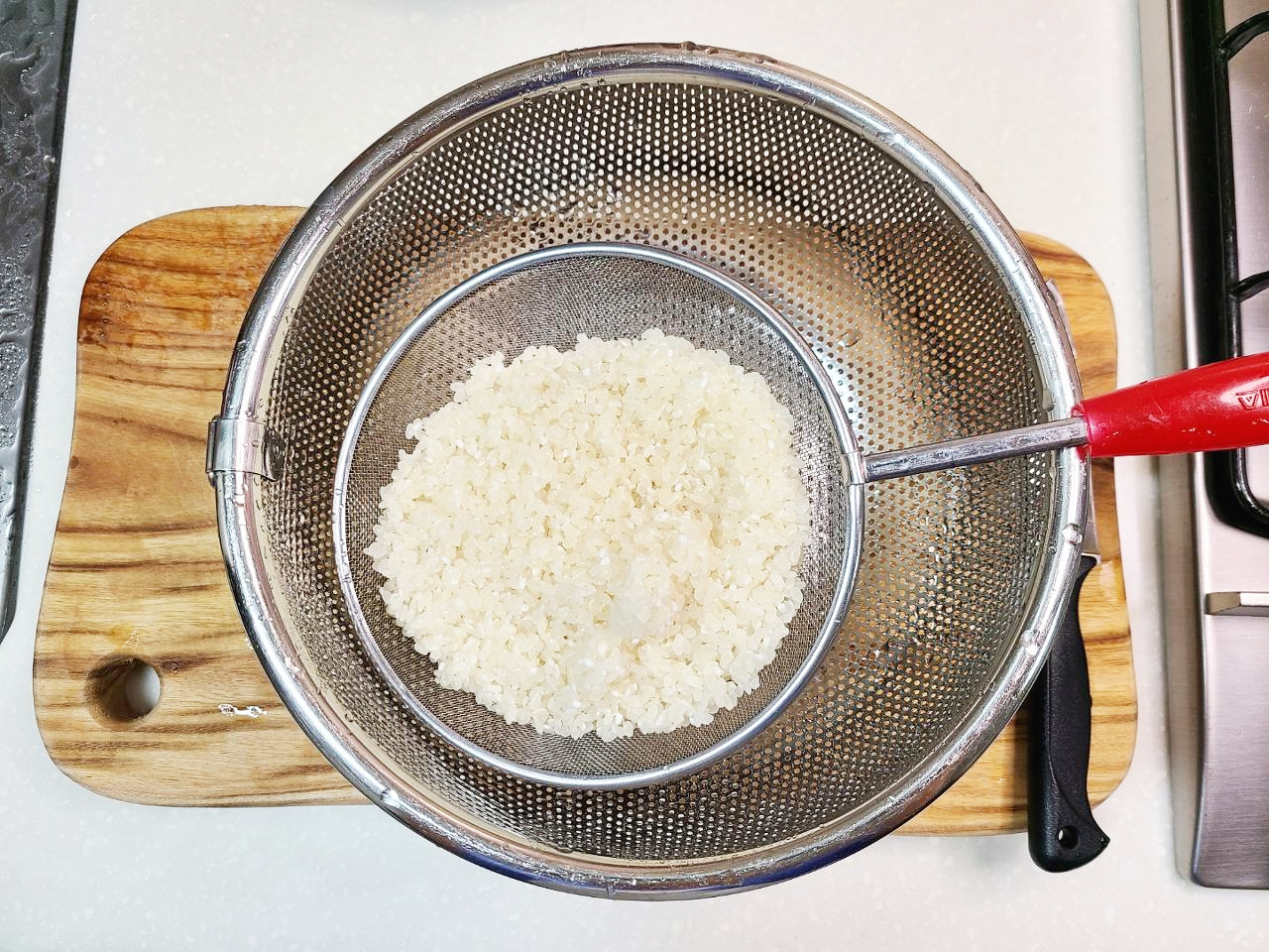 생쌀은 잘 씻어서 채에 밭쳐 준비합니다.
