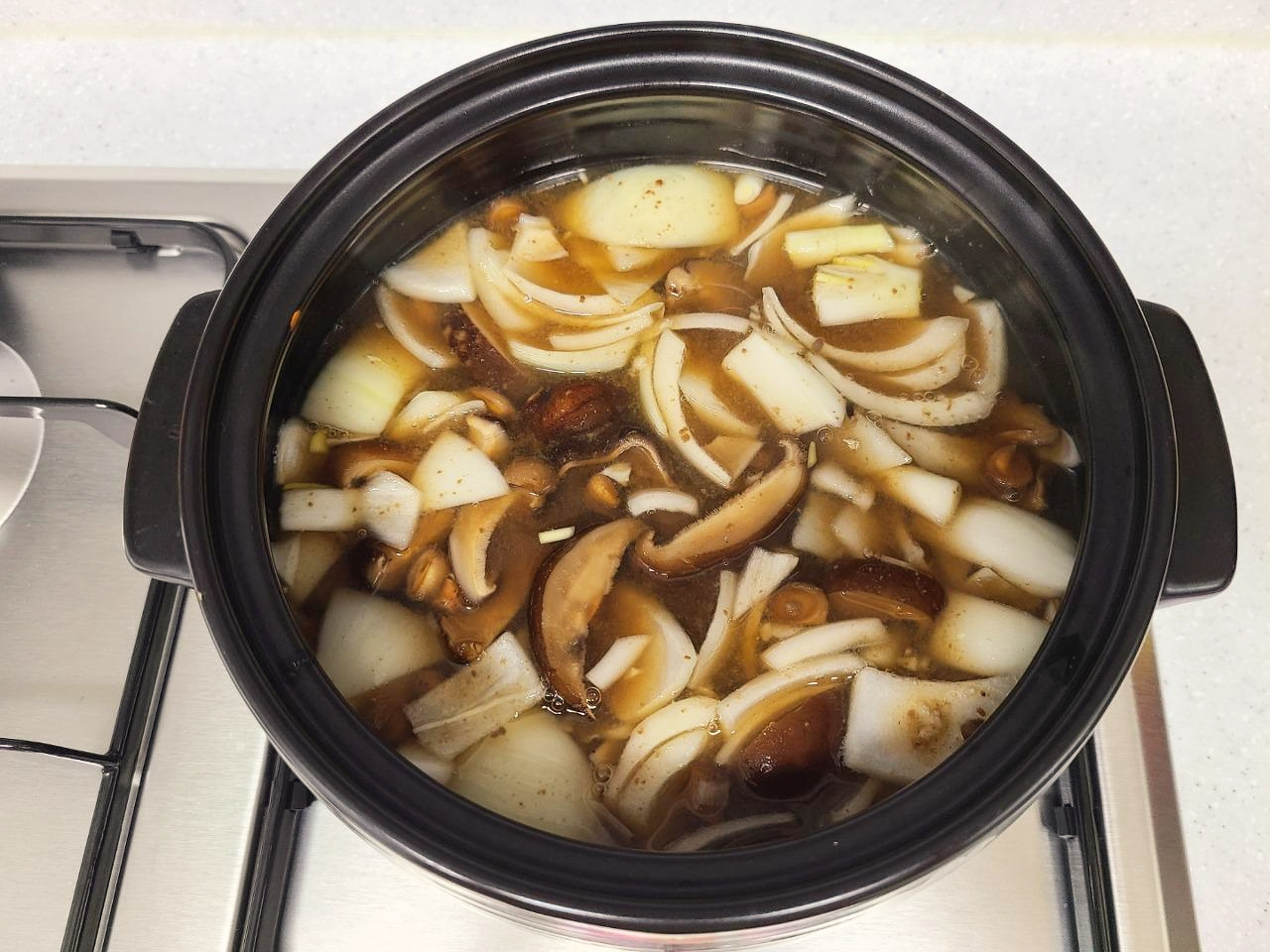 (육수 전체를 표고버섯물로 하셔도 됩니다.)