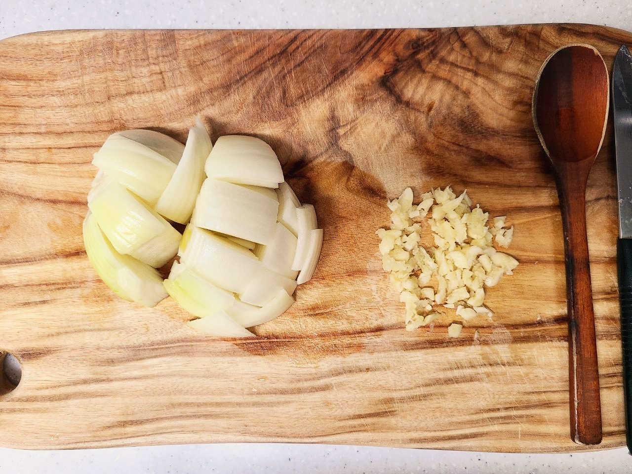 양파는 1cm크기로 잘라주고 마늘은 다져주세요.