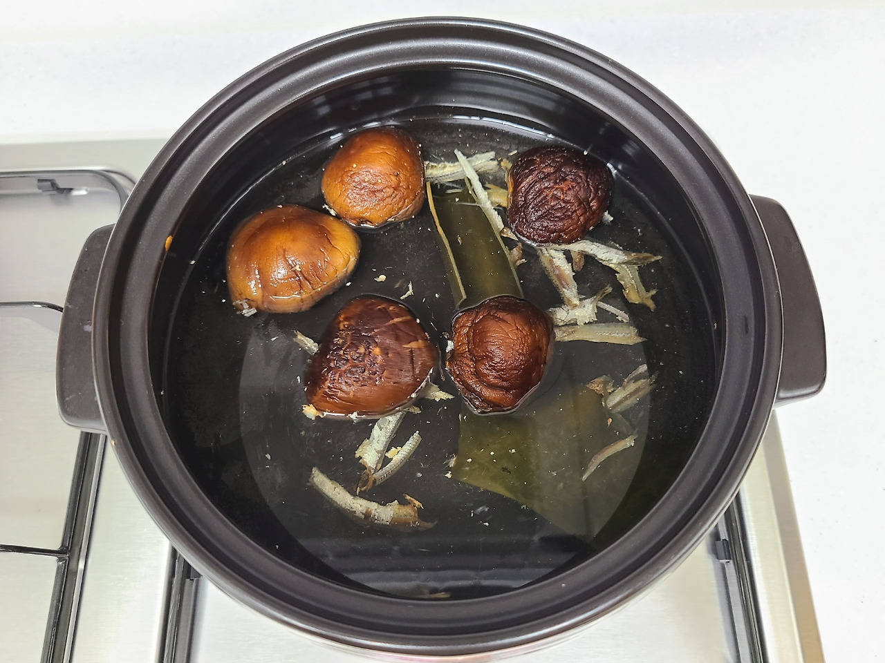 . 국물용 멸치, 다시마, 표고로 국물맛을 낸다.