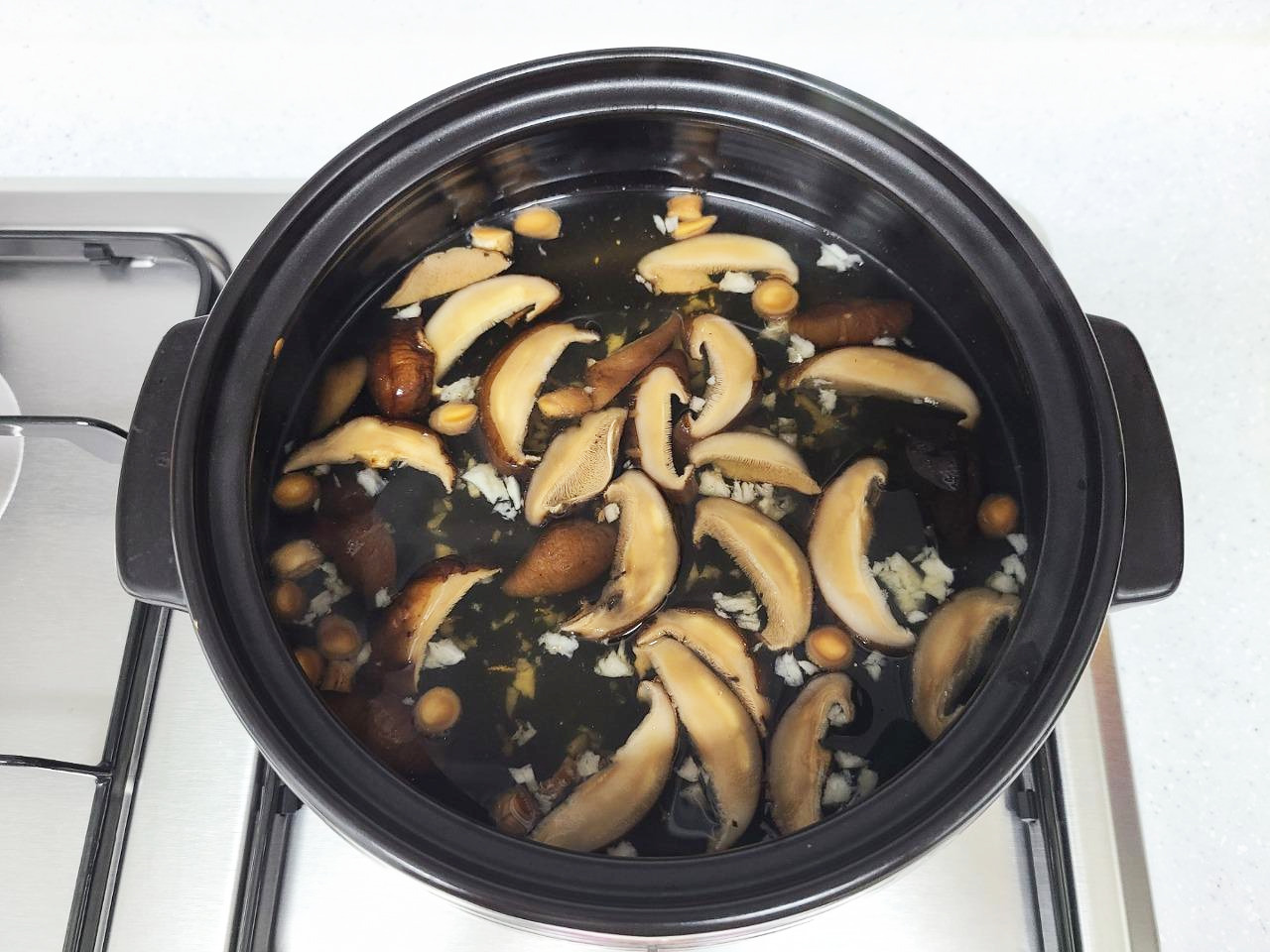 불린 표고와 표고버섯 물 200ml를 넣어줍니다.