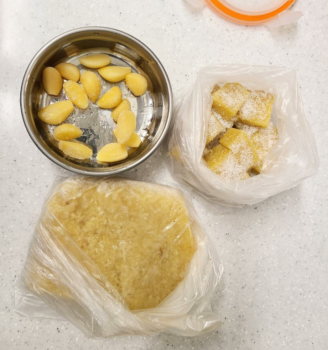 냉동실로 갈 바나나와 두부, 용도별로 구분해 놓은 냉동 마늘