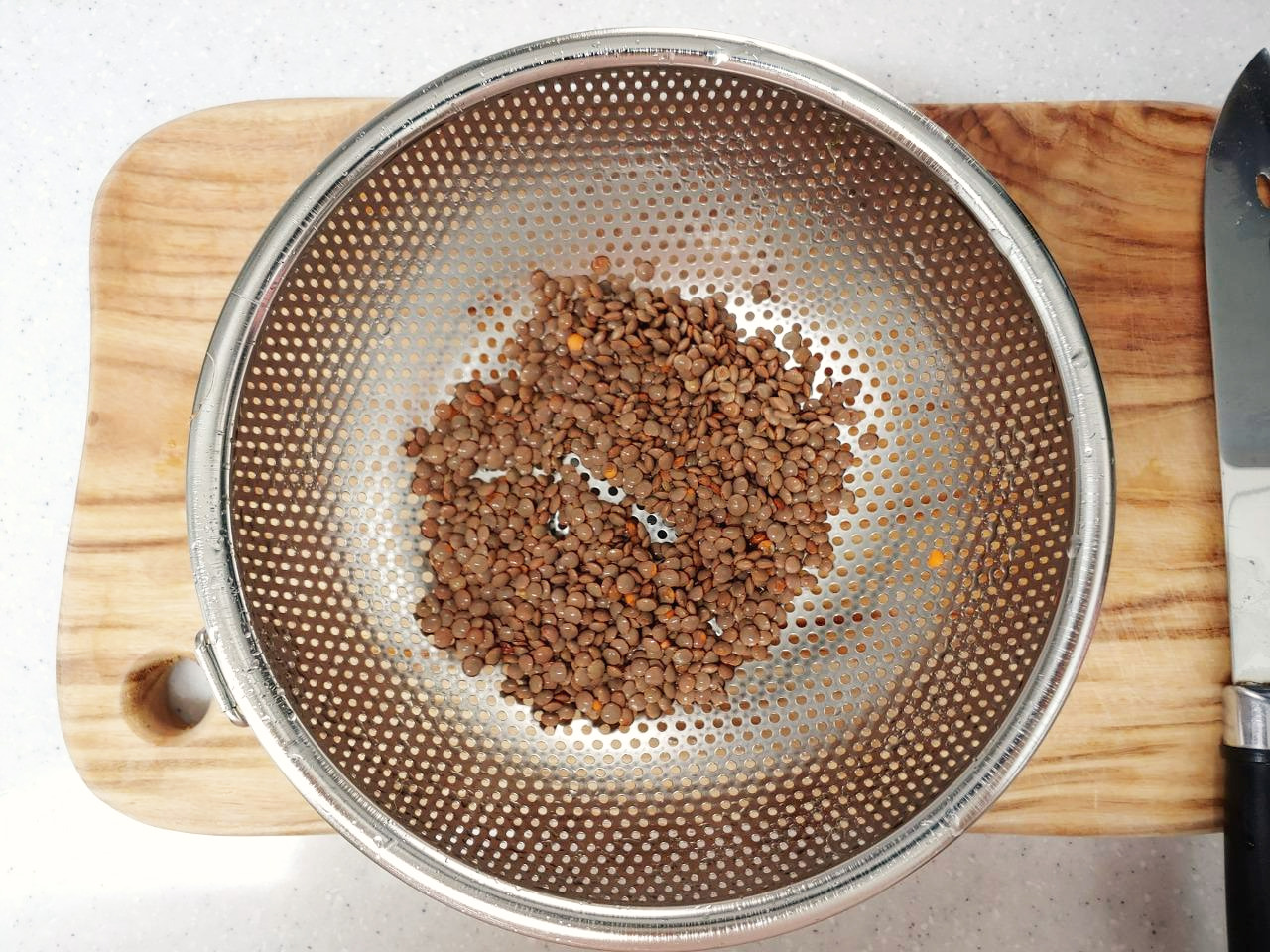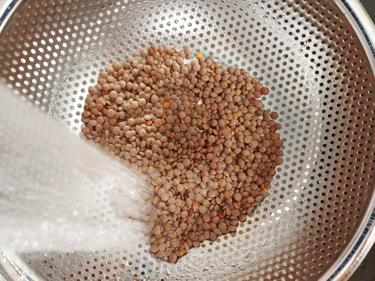 렌틸콩을 물에 살짝 씻은 다음 물기를 잘 말려주세요.