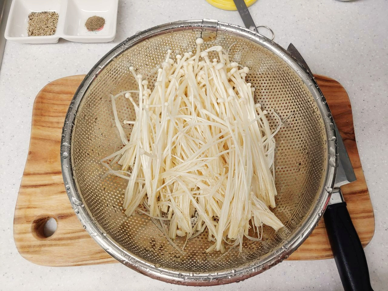 면처럼 돌돌 말리는 팽이버섯 식감이 오독오독, 씹는맛도 좋고.
