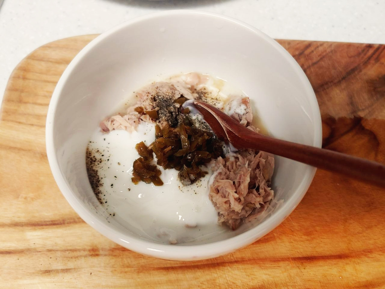 다음 참치 요거트 소스에 넣고 버무려주세요.