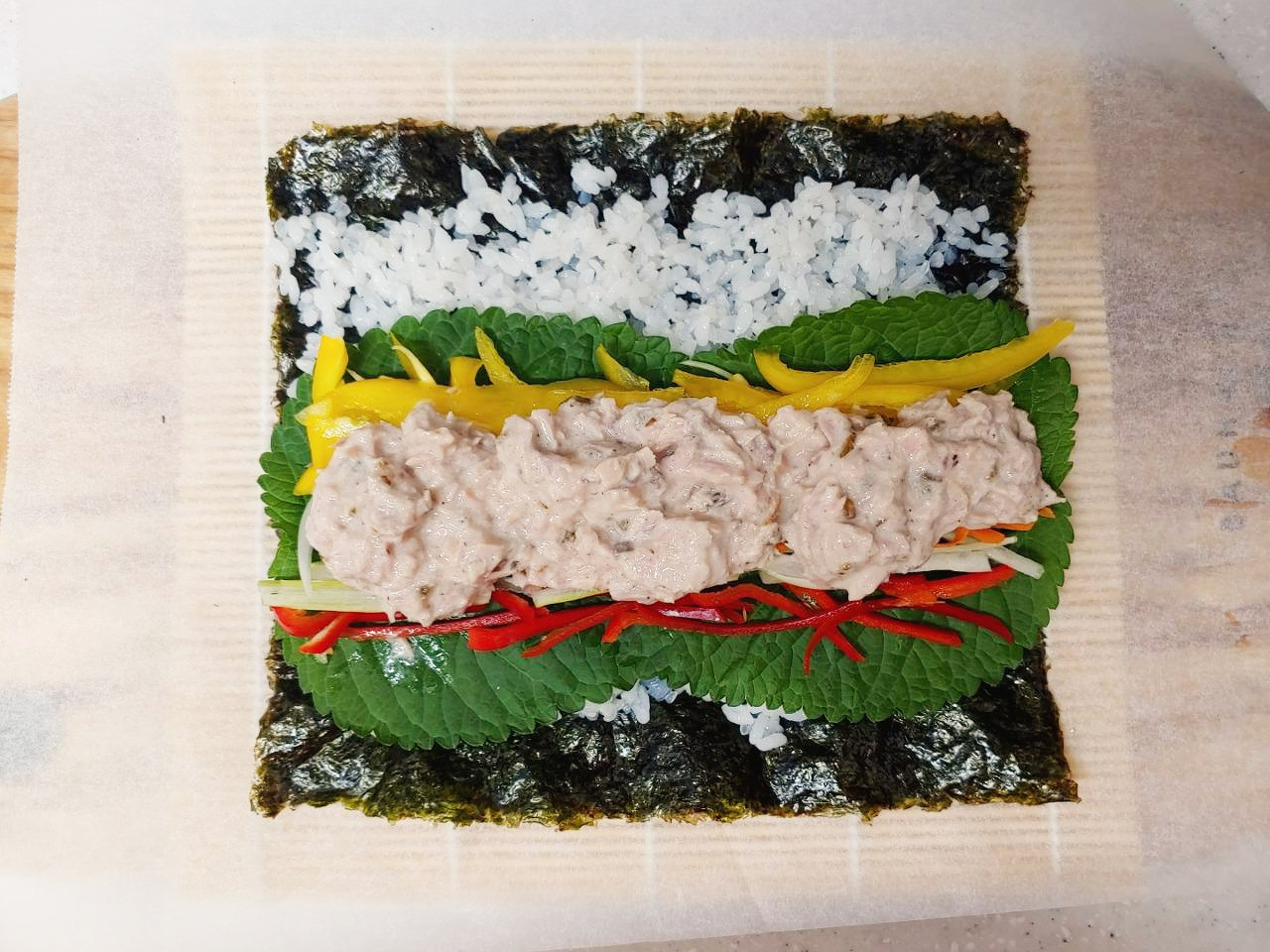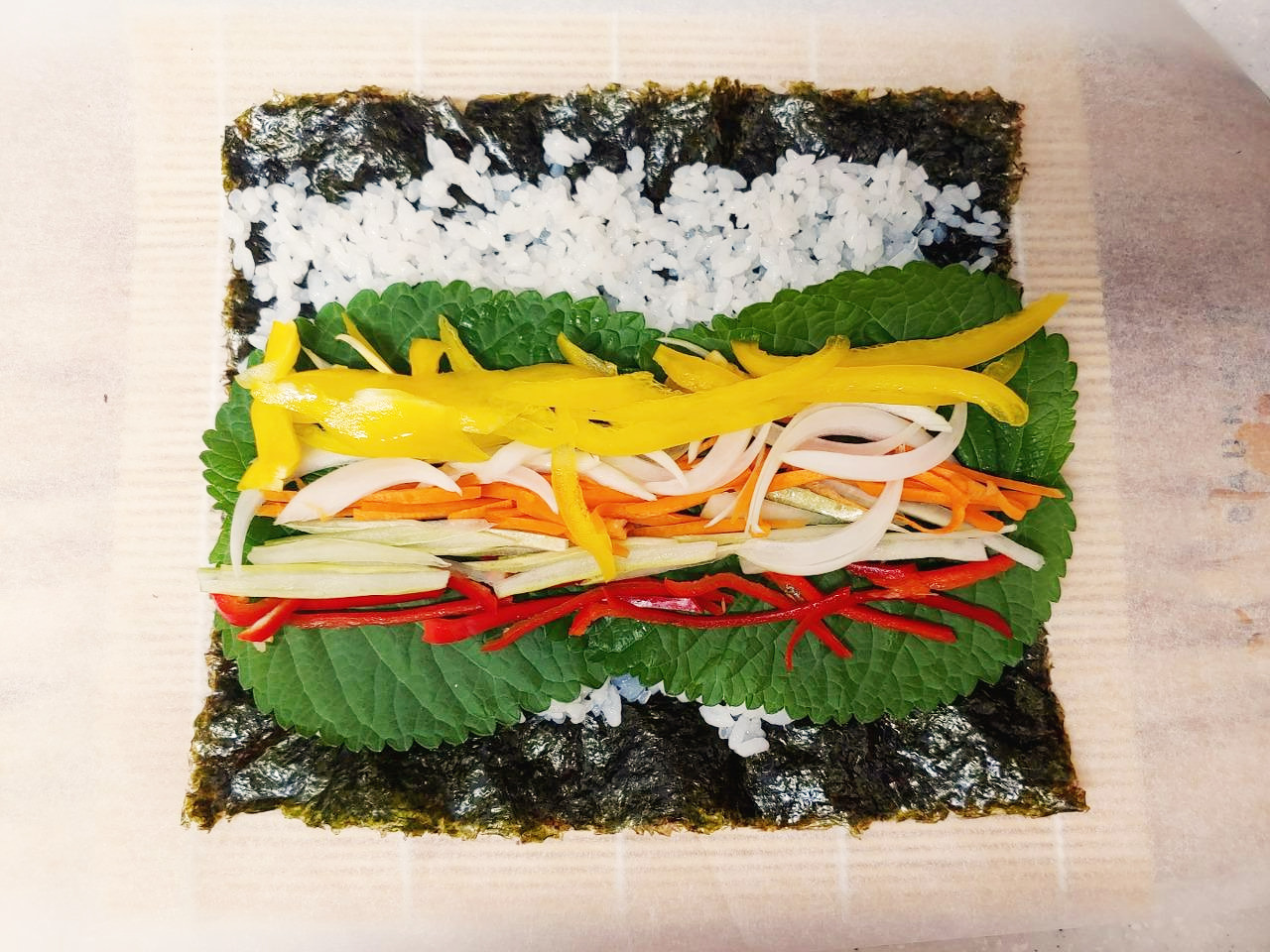 . 단무지 대신 노란 파프리카를 넣는다.