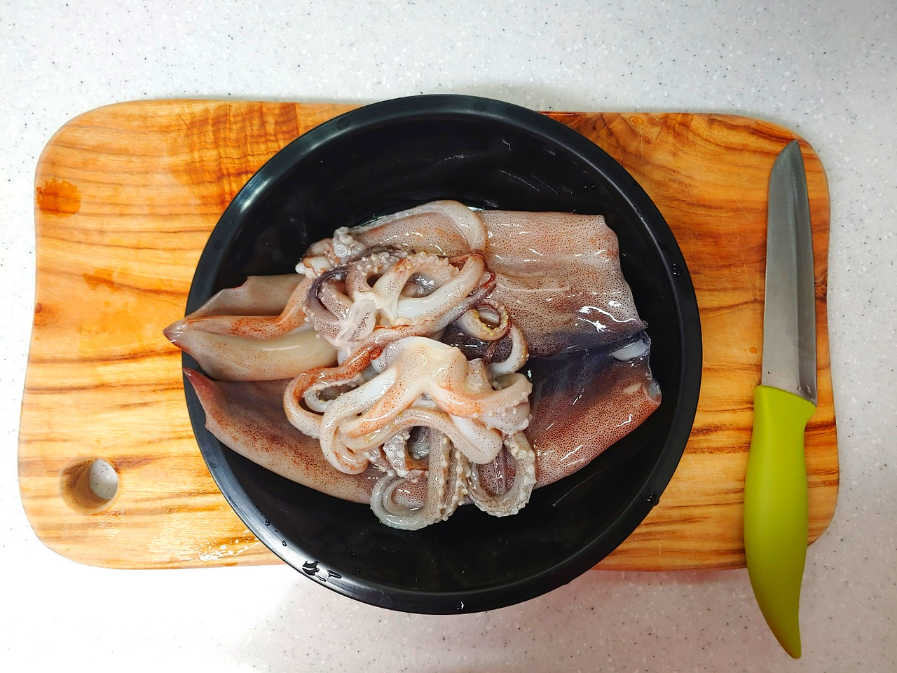 (냉동 오징어는 요리 하루 전 냉장실로 옮겨서 해동해주세요. 씻을 때는 빨판의 이물질들을 깨끗이 제거해줍니다.)