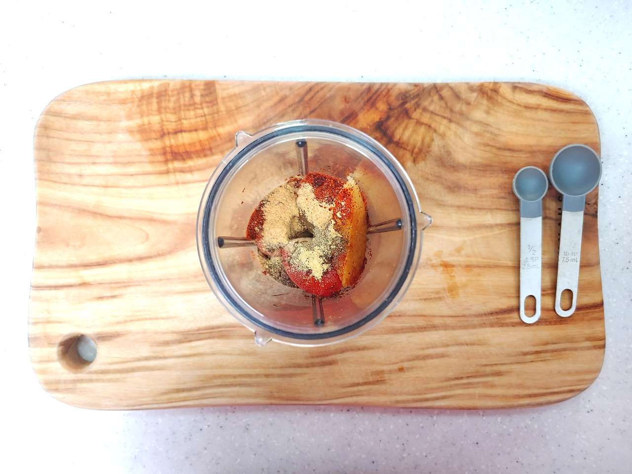 올리고당을 제외한 양념장 재료들을 믹서에 넣고 갈아주세요. (올리고당은 요리 맨 마지막에 넣을 거에요.)