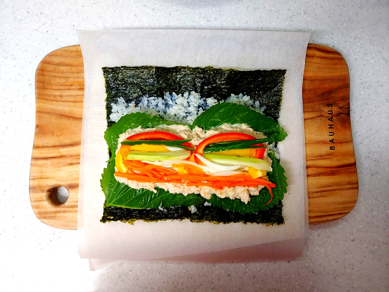 동물성 재료가 전혀 들어가지 않은 비건 참치마요김밥 완성!