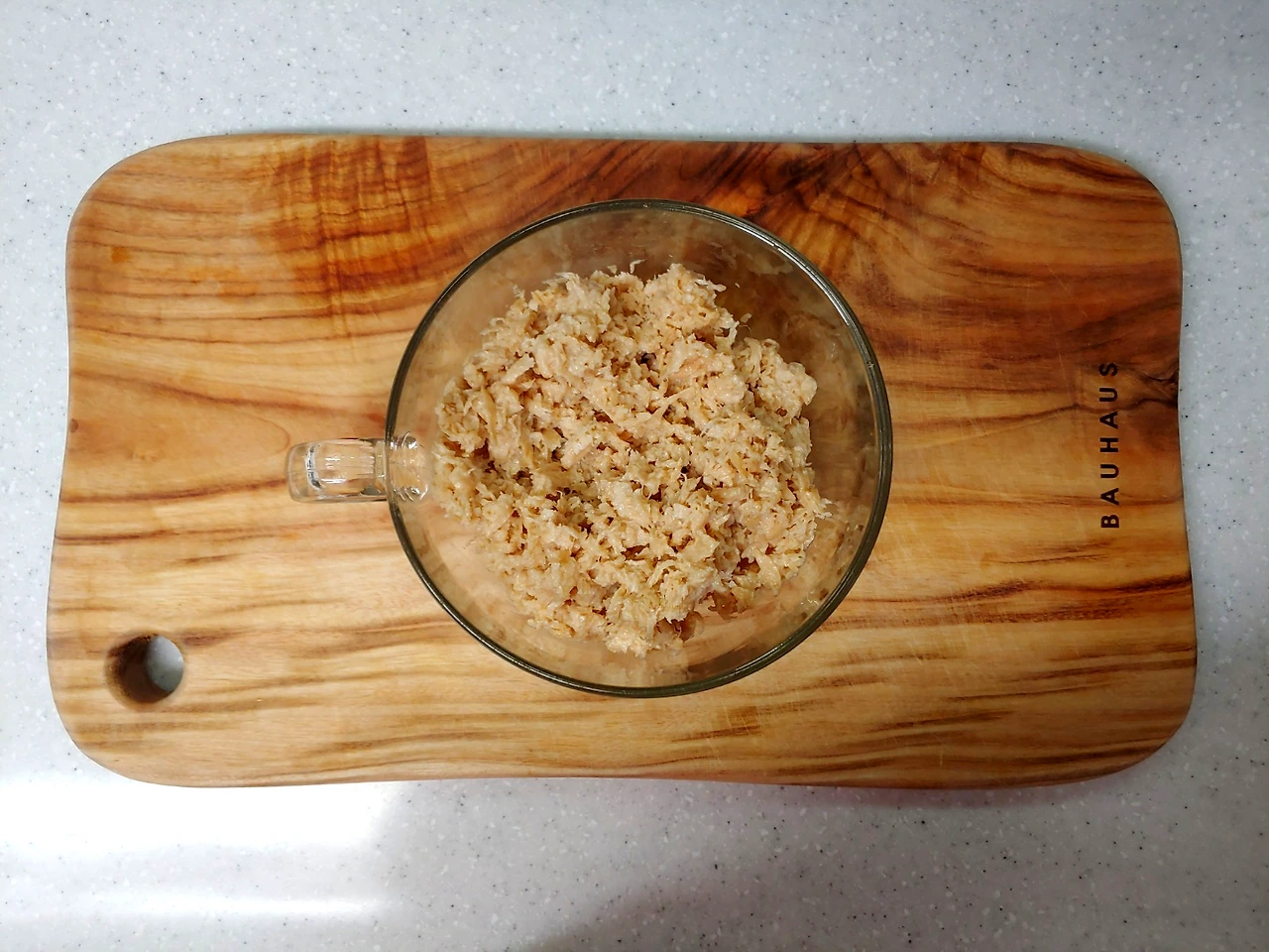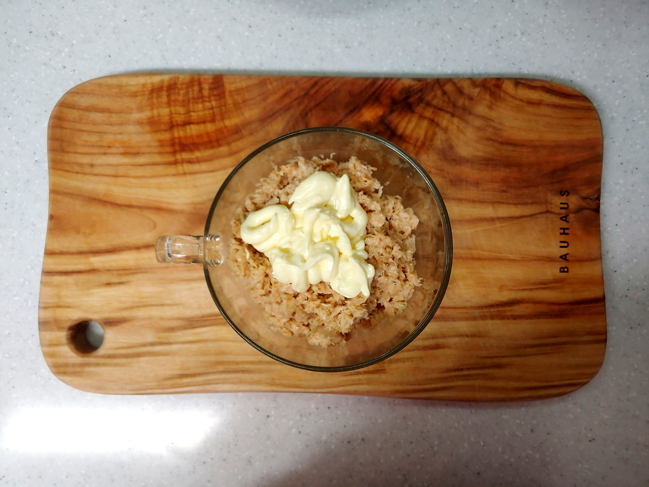 참치는 꼭 짜서 물기를 제거한 다음 비건 마요네즈를 넣고 잘 섞어주세요.