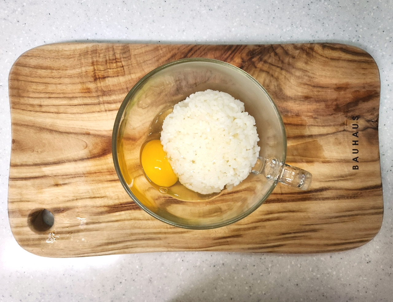 밥 한공기(150g)에 달걀을 풀고 잘 섞어주세요.