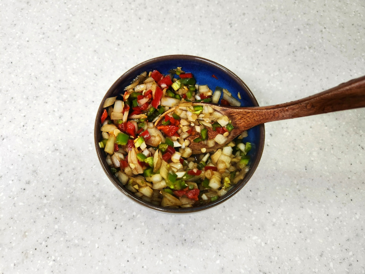 양념장에 양파, 청고추, 홍고추를 넣어 잘 섞습니다.