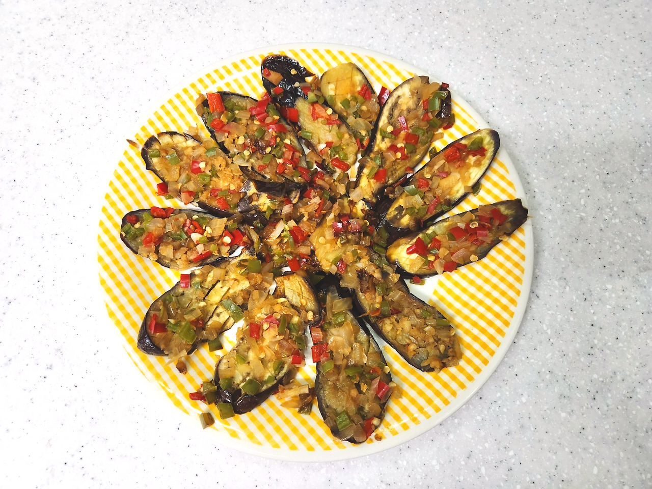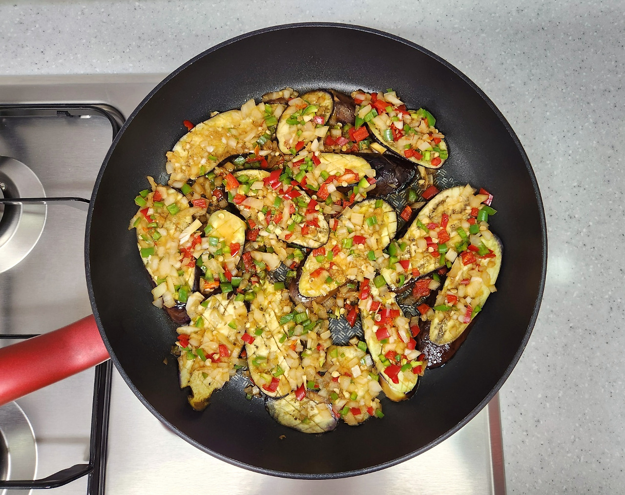 고기반찬 없어도 초간단 가지조림 하나면 밥반찬 뚝딱이지요. 뚜껑을 덮고 쪄내서 그런지 양파, 고추의 단맛이 풍부하게 올라옵니다.