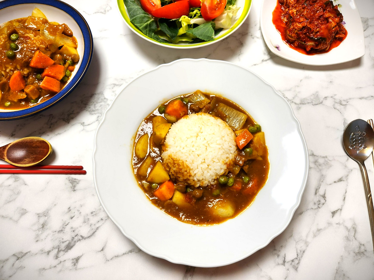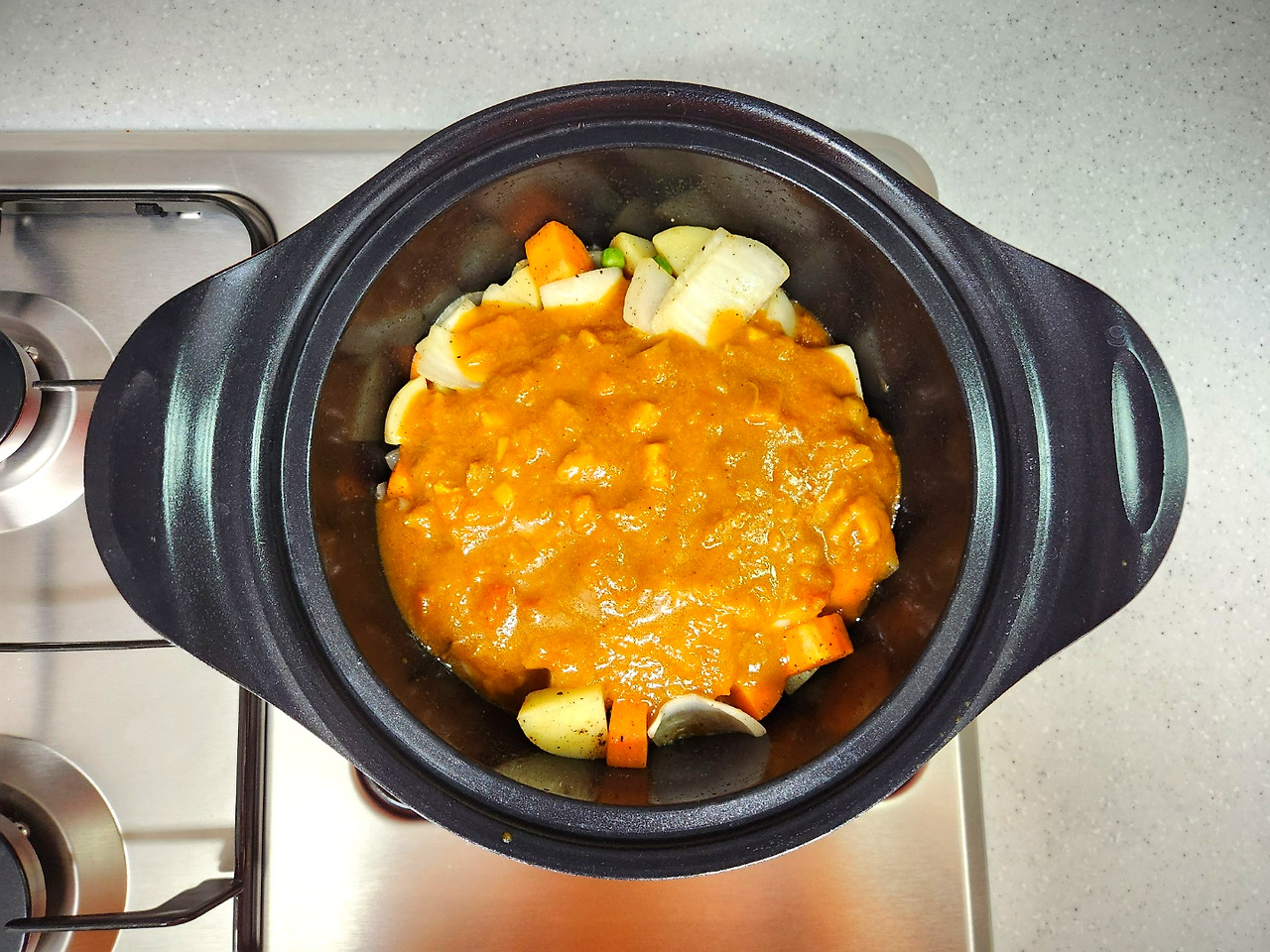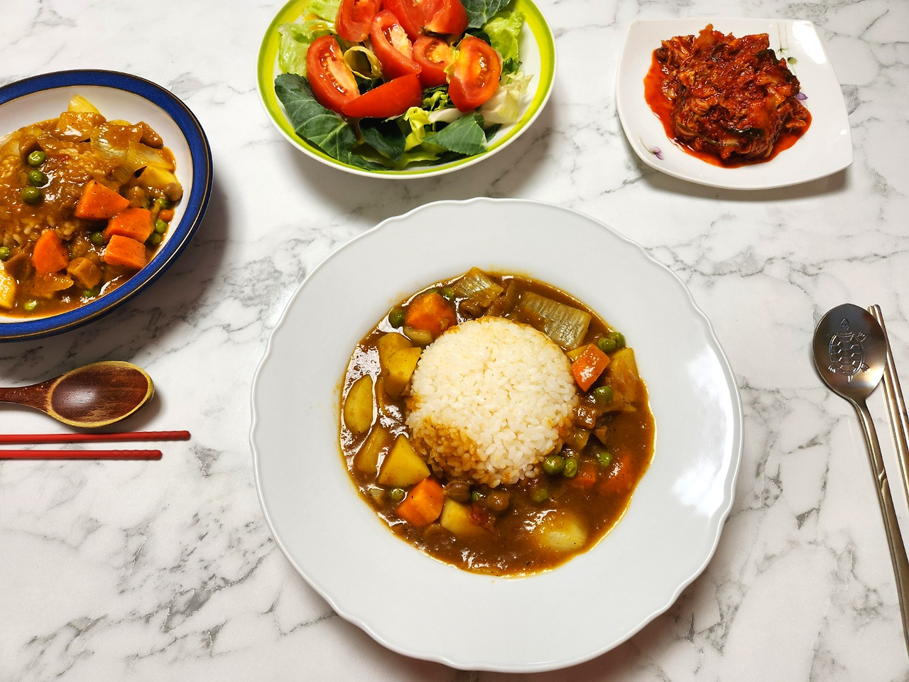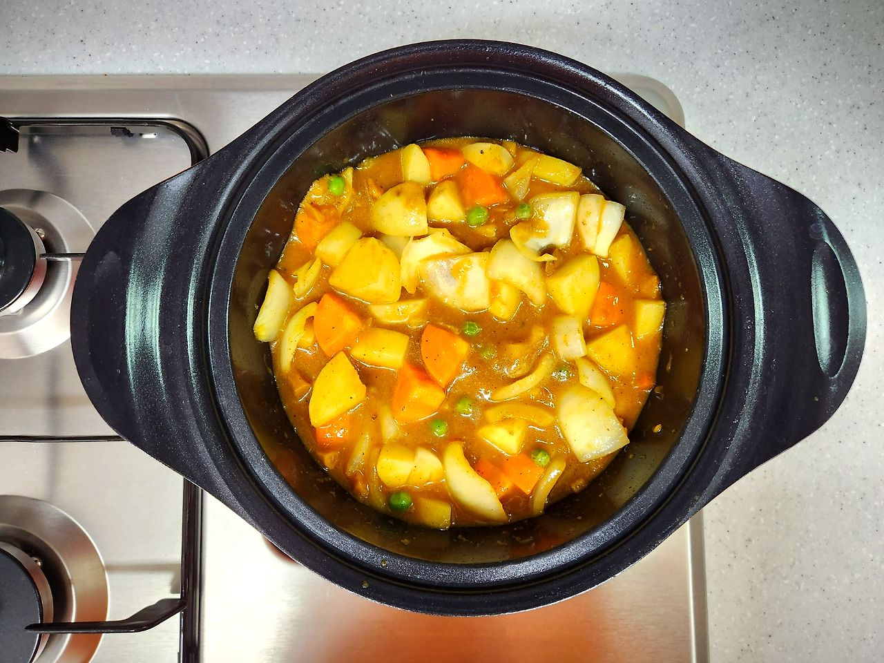 즉석카레 3인분으로 만들어 낸 4인분 카레, 짠맛도 줄고 큼지막한 채소도 넣어 간도 잘 맞아요.