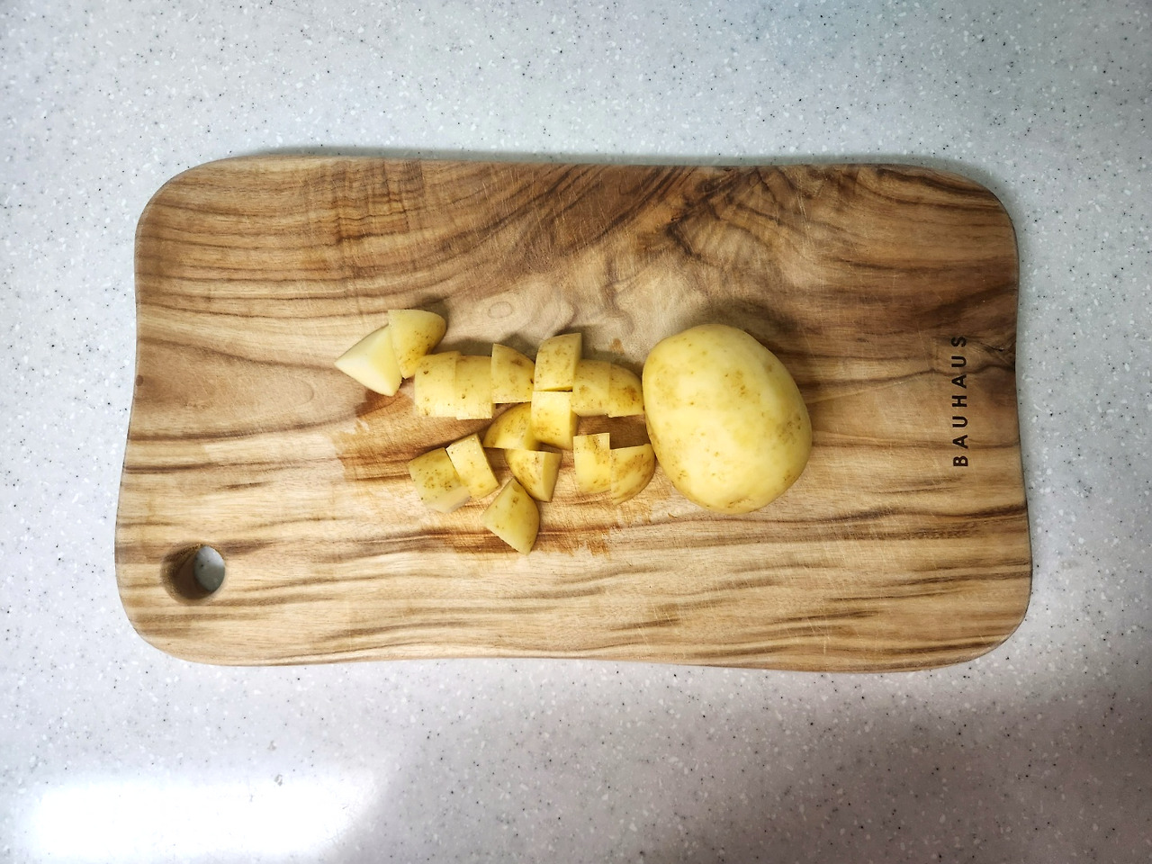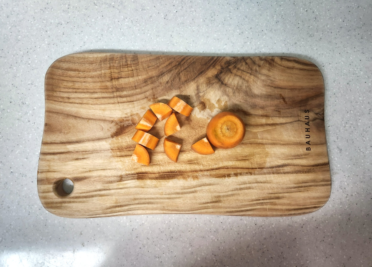 감자, 당근을 깍뚝썰기 합니다.