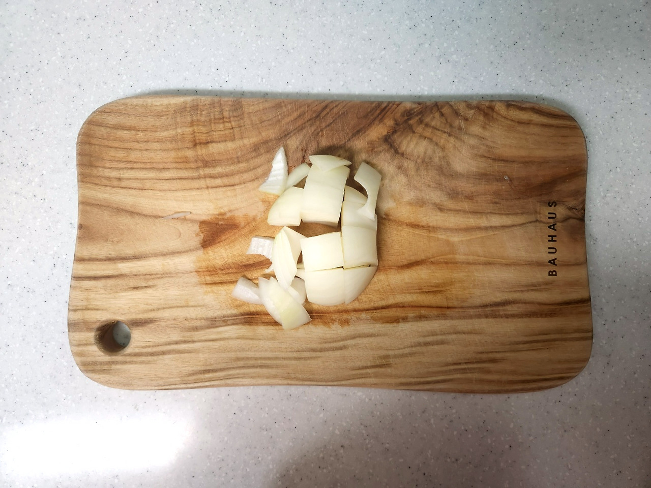 양파도 가로, 세로 1cm 크기로 잘라서 준비합니다.