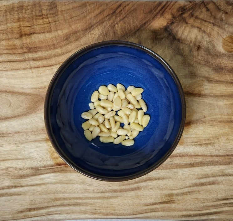 잣 10g에 두유 20ml를 넣고 부드러워질 때까지 갈아줍니다.