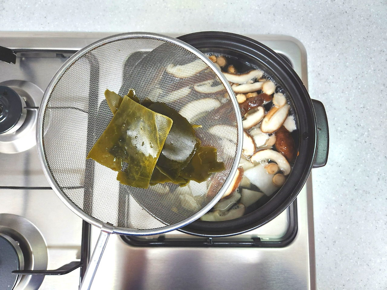 보통 국물 요리에 멸치와 함께 사용하지만 멸치 대신 표고 버섯과 넣어도 맛있는 국물을 우릴 수 있습니다.