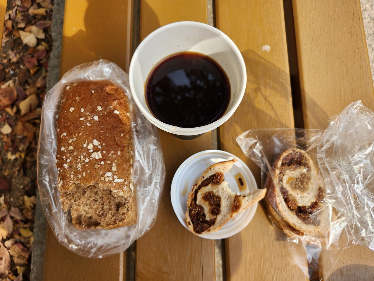그런데 남편이 공원 벤치에 앉자마자 "난 비건빵 싫어!"를 외치는 겁니다. 오늘 이 브런치를 위해 성수동에서 통밀빵을 사온 건데? 건강해보여 한번 먹어보겠다고 할 땐 언제고? 암튼 저도 비건을 강요하고 싶진 않아서 다른 빵을 사주기로 했죠.