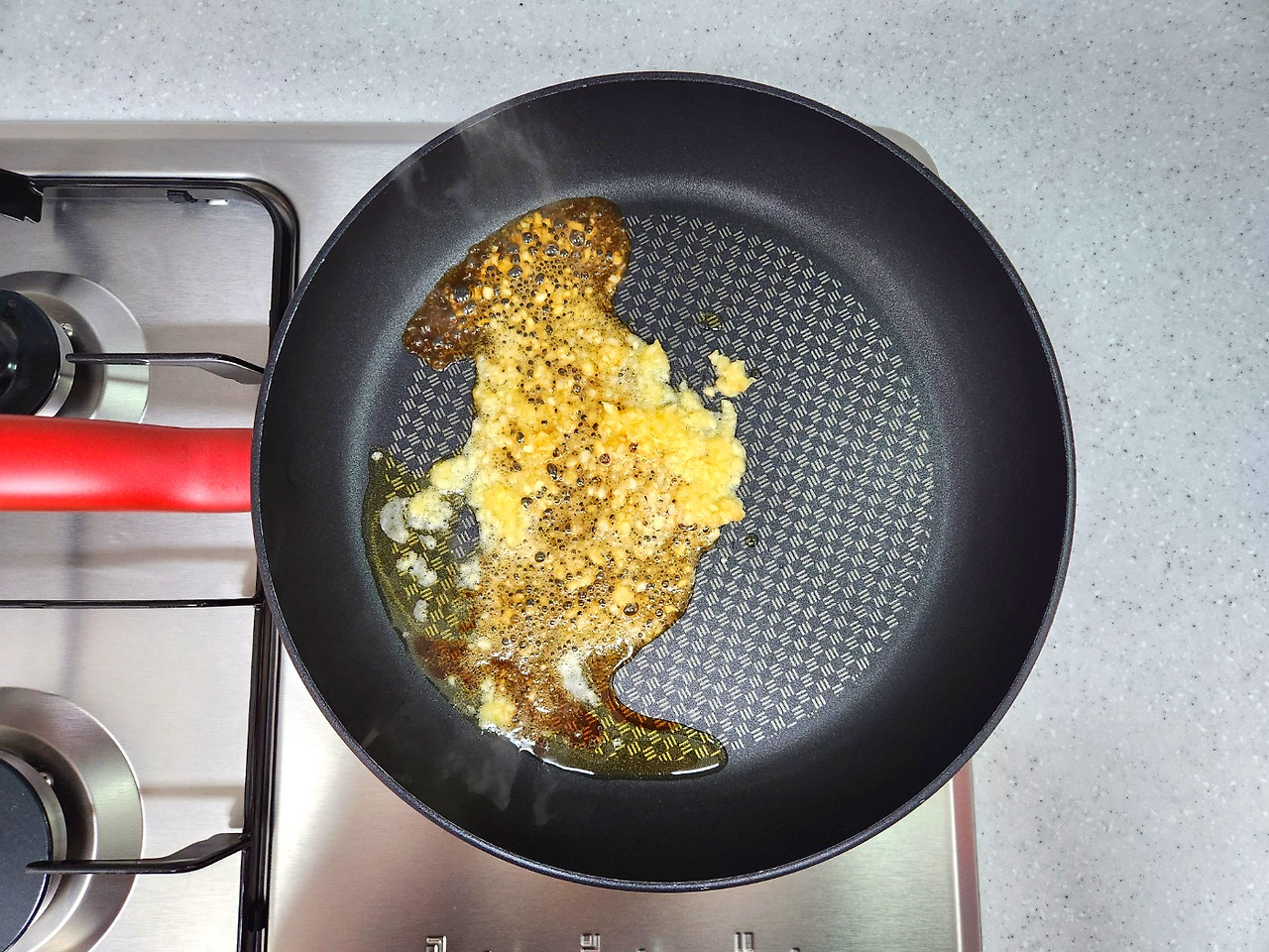 들기름에 마늘을 볶다가 저염간장, 국간장을 넣고 볶아줍니다.