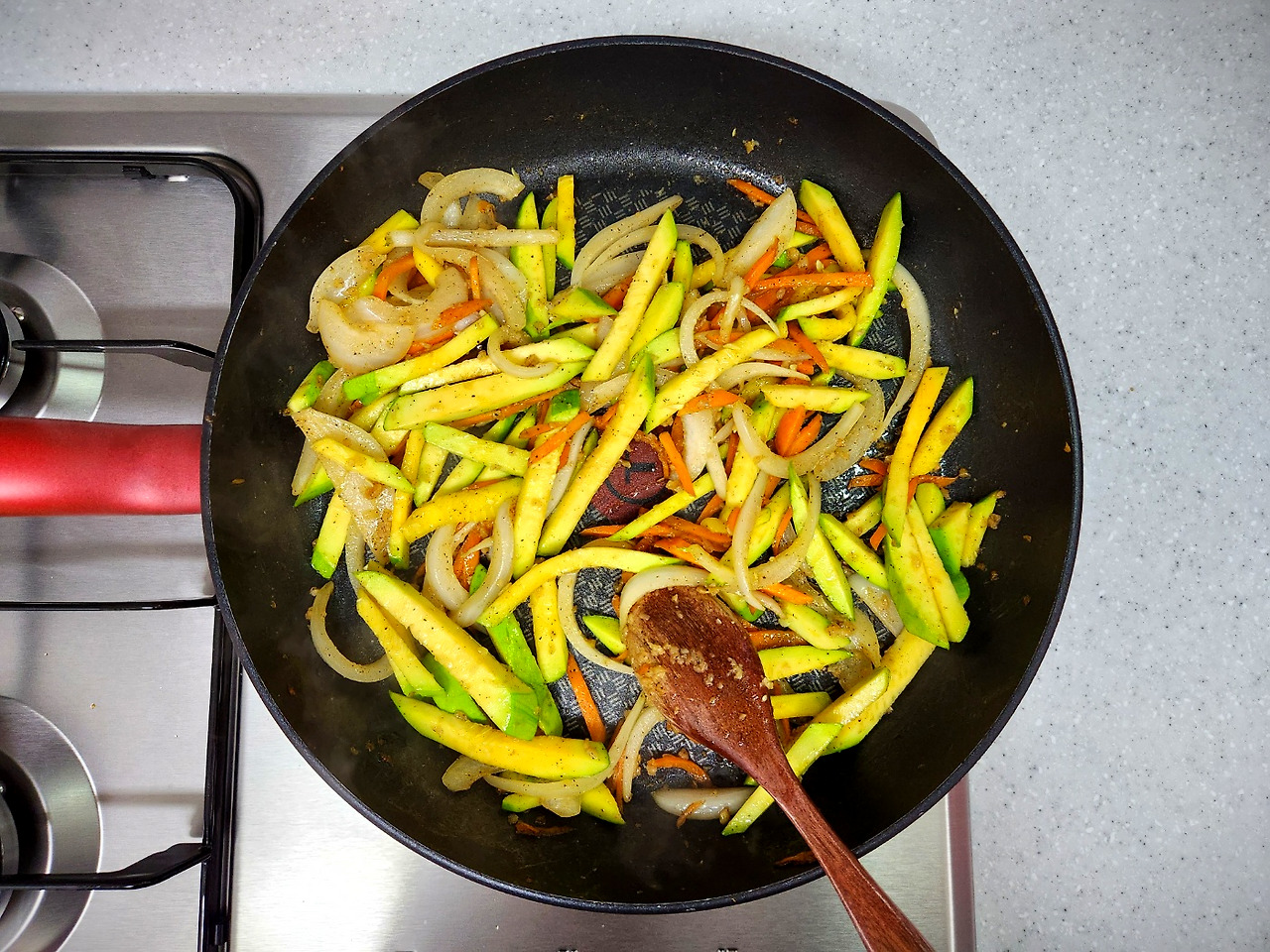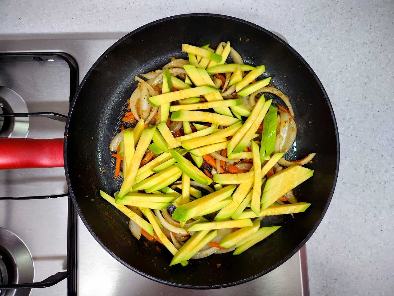 애호박을 넣고 부드러워질 때까지 볶아줍니다.