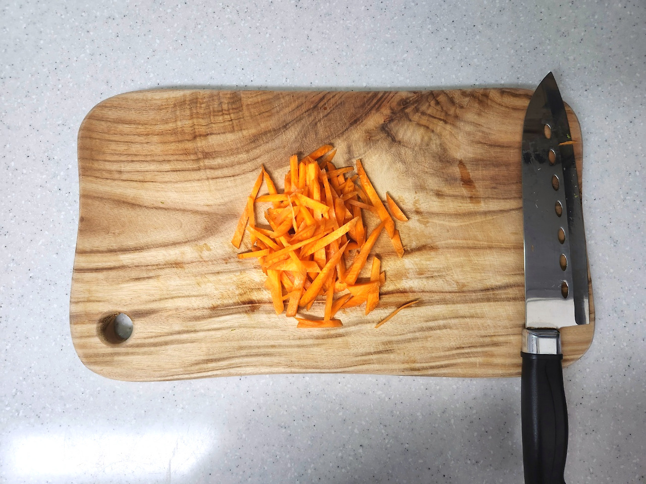 양파와 당근은 얇게 채썹니다.