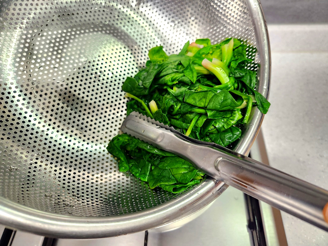 Tip 1. 데친 시금치는 집게나 젓가락으로 가볍게 물기를 제거한다.