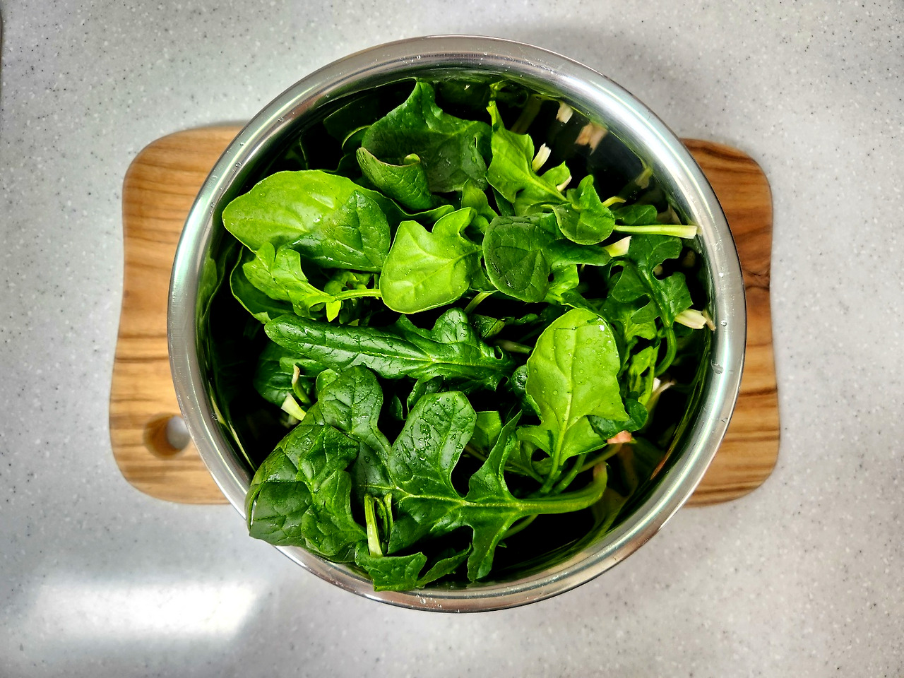시금치는 흐르는 물에 2번 정도 씻어 깨끗하게 준비합니다. 큰 잎들은 하나씩 떼어가며 찬물에 꼼꼼히 씻고, 뿌리에 붙은 흙은 칼로 살살 긁어 제거합니다.