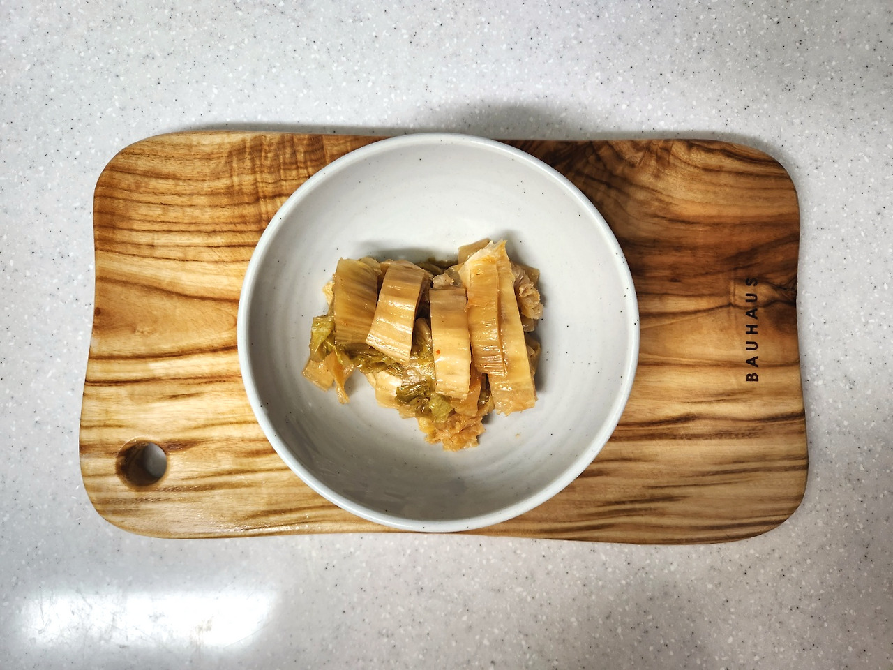 시원하고 깔끔한 콩나물국을 끓이려 양념을 털어내니 하얗게 드러나는 묵은지의 속살! 빨갛고 자극적인 양념을 벗으니 희끄무리한 속살이 보이기 시작했습니다. 하얗다 못해 투명해진 묵은지의 속살은 오래 묵어 있던 시간만큼 자신의 속을 비워내며 매콤한 양념에 스미듯 배추에서 김치, 김치에서 묵은지로 익어갔겠죠?