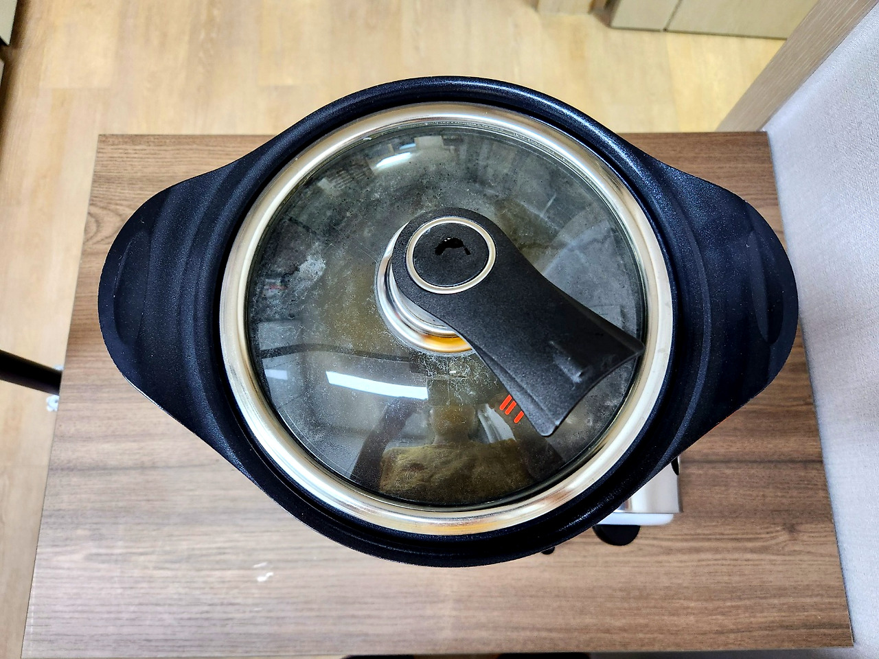 마지막으로 콩나물 숨이 죽으면 멸치액젓으로 간을 한 뒤 파, 청양고추, 홍고추를 넣어줍니다.