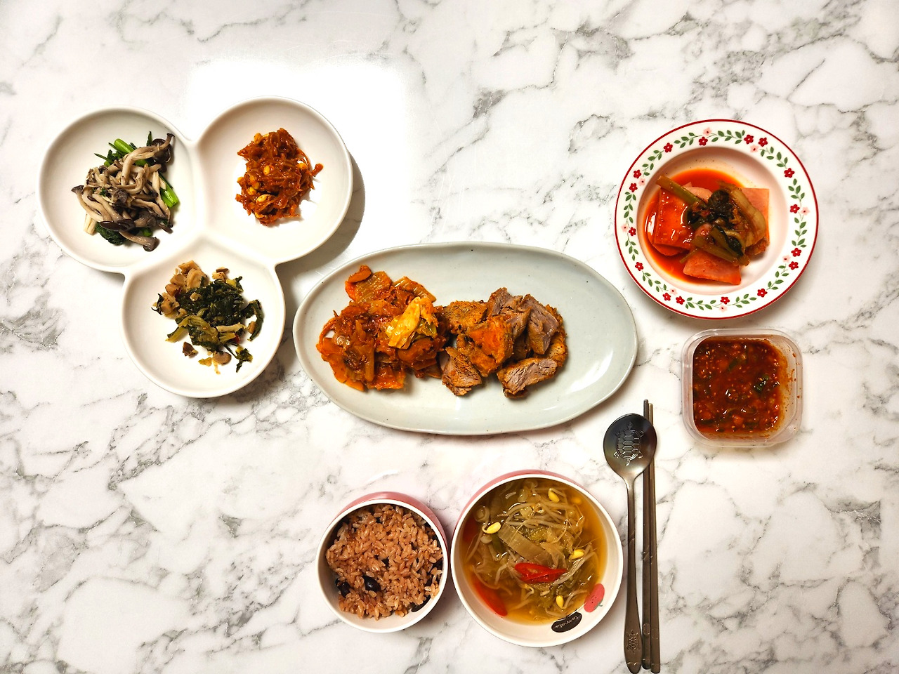 나물 3종세트와 사태찜, 순무김치 함께 올렸어요.