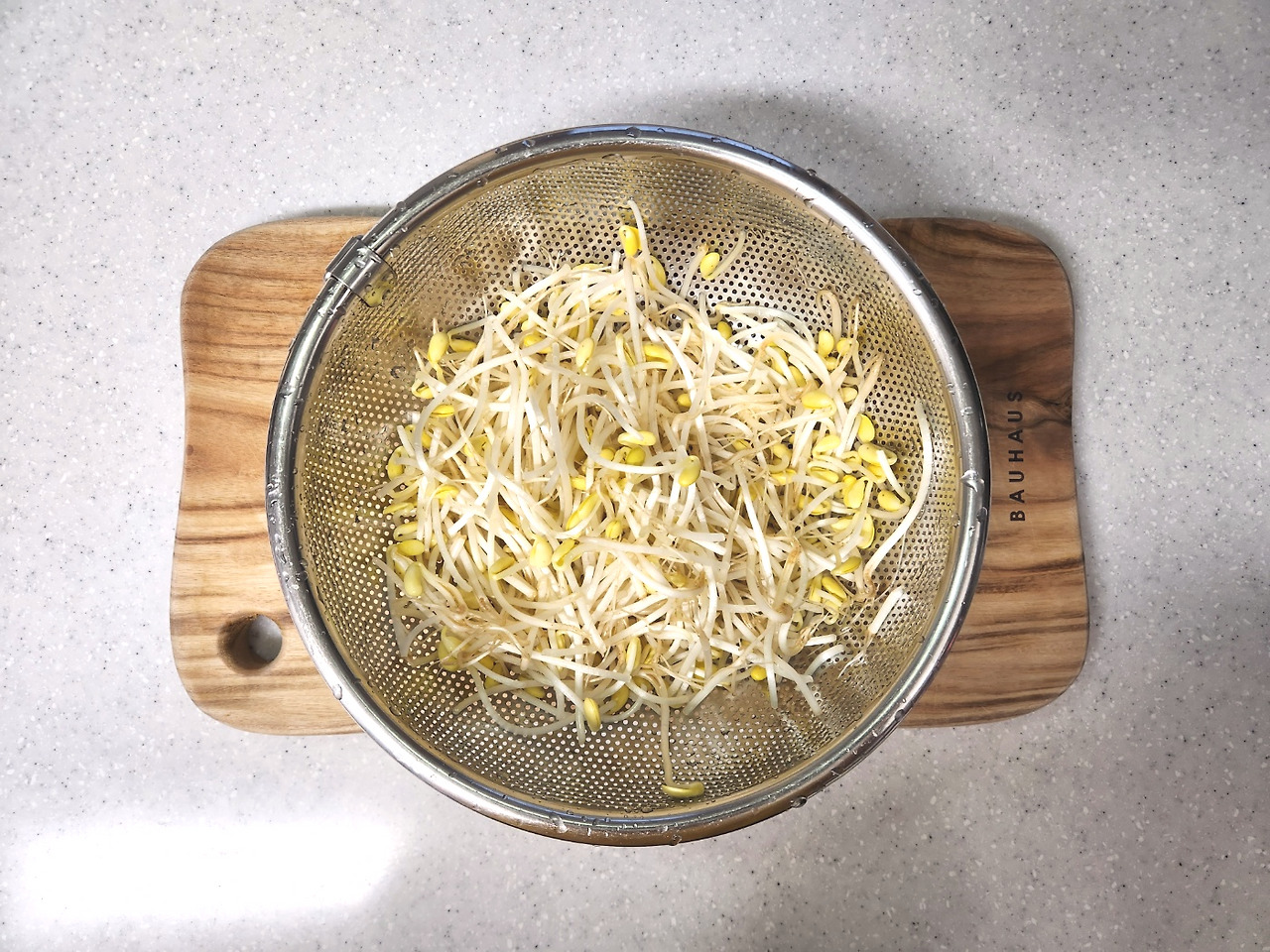 콩나물은 찬물에서 한번 씻어주세요. 콩껍데기는 비린내가 많이 나기 때문에 꼼꼼히 제거해줍니다.