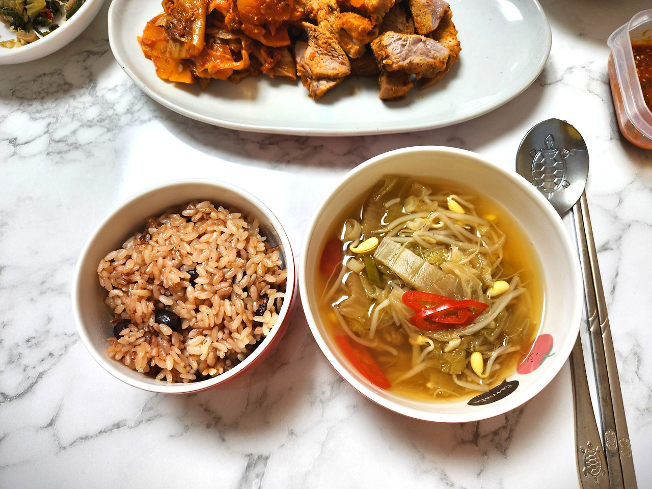 인생도 그런 것 같아요. 매콤한 시집살이, 쓰디쓴 사회생활. 견디다 보면 어느덧 나의 인생도 묵은지처럼 푹 맛있게 익어가지 않을까요? 묵은지의 양념을 툴툴 털어내며 올 한해 있었던 나쁜일들도 툭툭 털어냈습니다. 뽀얀 속살처럼 묵은지 같은 인생, 내년에는 콩나물 같은 좋은 기회 만나 행복한 일들만 가득했으면 합니다. 묵은지의 인생 2막, 깔끔시원한 김치콩나물국 소개할게요.