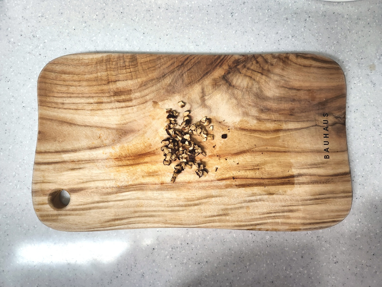 말린 표고를 충분히 불려줍니다. 홍고추는 씨와 심지를 제거한 뒤 잘게 다져주세요.