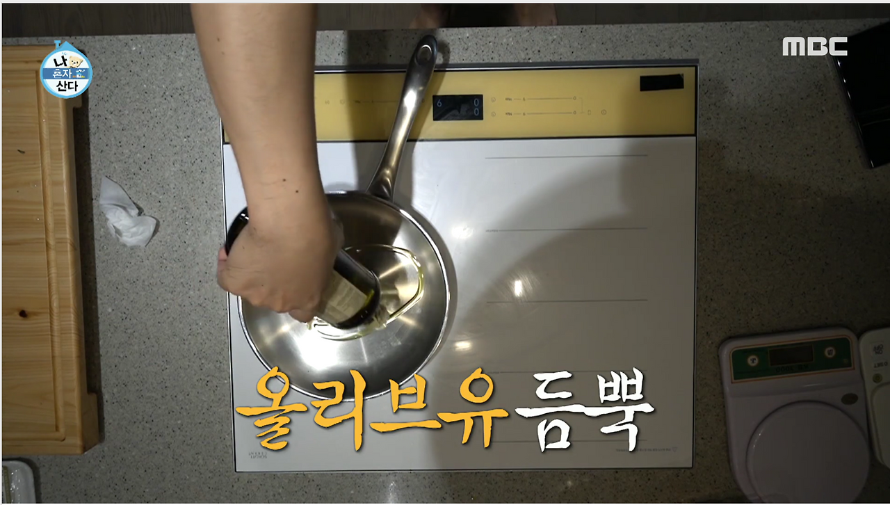 메인요리로 넘어가서 아스파라거스 스테이크를 하겠다며 올리브유를 조금이 아니라 왕창 프라이팬에 들이 붓는 모습. 이건 뭐 건강식이 아니라 거의 튀김요리다. "식물성 기름이라 괜찮아!"라고 패널들 사이에서 떠들던 전현무씨의 목소리는 더 가관이었다. 차라리 처음부터 건강식이라는 말을 하지 말던가.