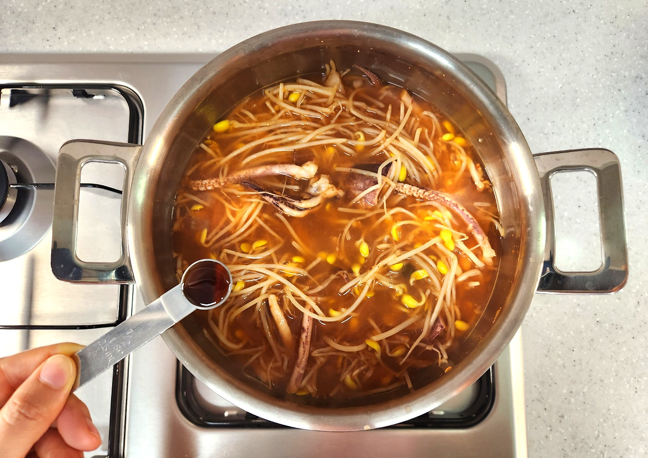 그리고 무엇보다 자식 걱정이 많은 부모님을 보면서 진정한 효도는 시부모님의 아드님, 저의 남편에게 잘 하는 것이란 걸 깨닫습니다. 우리 부부가 싸우지 않고 행복해야 부모님도 평안하시단 걸. 그래서 김치콩나물국을 먹으며 전주식 콩나물국을 찾는 오징어 같은 남편에게 오징어 콩나물국을 끓여줬습니다.