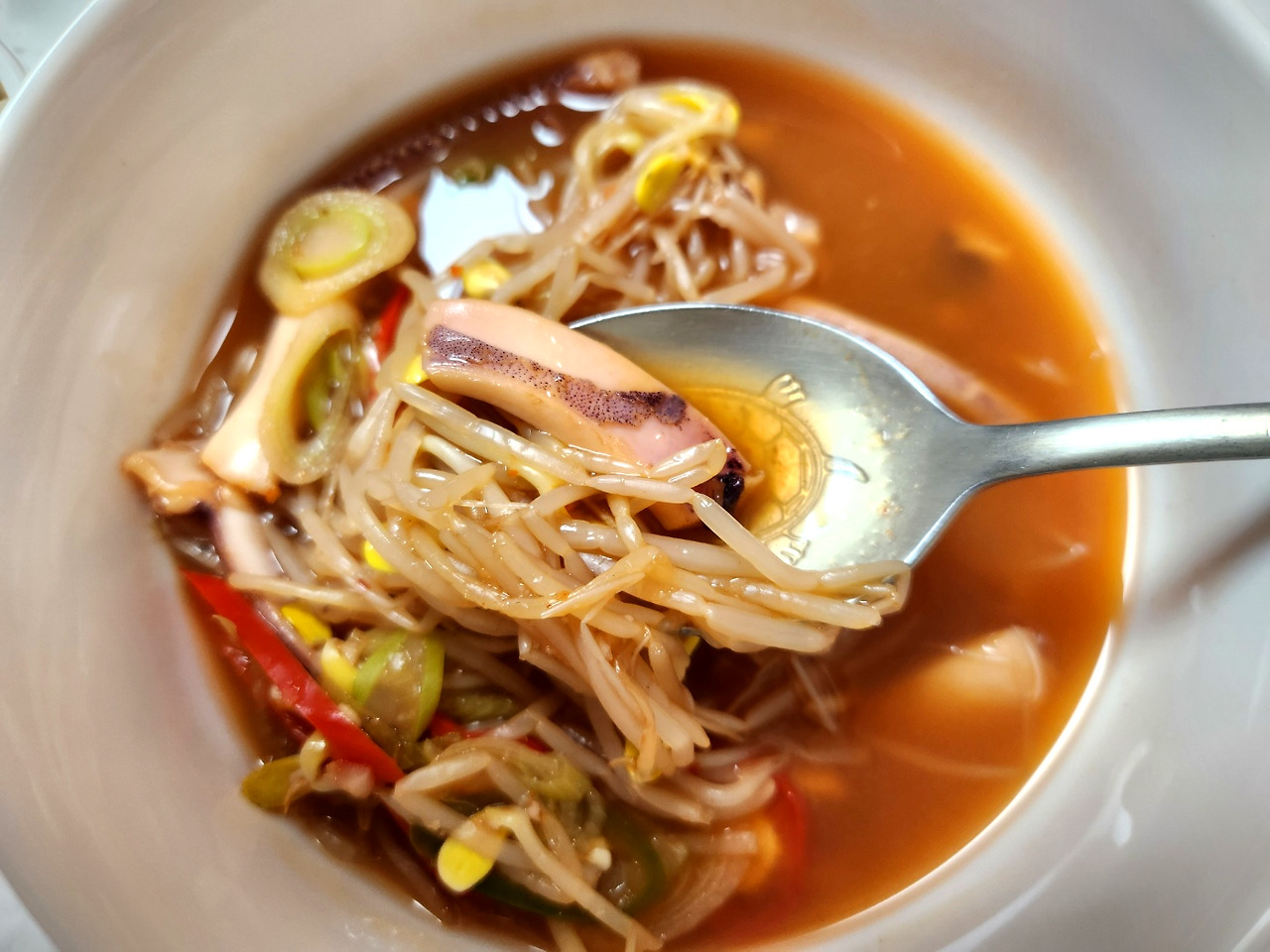 시원한 국물이 해장용으로도 좋고, 약간은 오징어짬뽕? 같다는 느낌도 든다고 오징어 같은 남편이 말합니다.