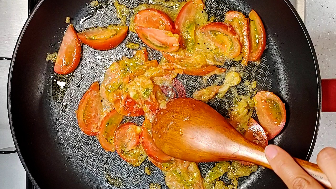 (토마토는 익은 다음 으깨야 부드럽게 뭉개집니다.)