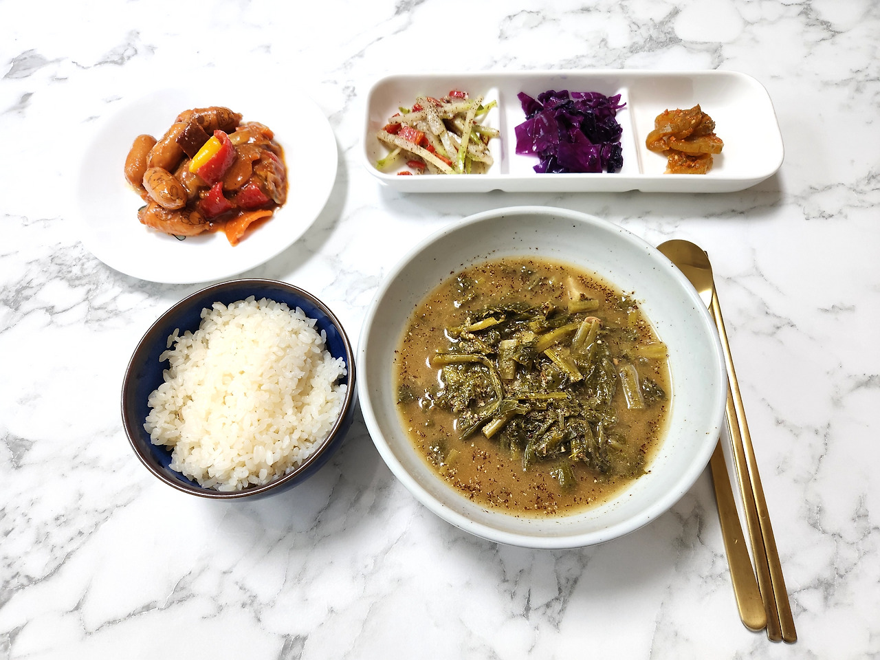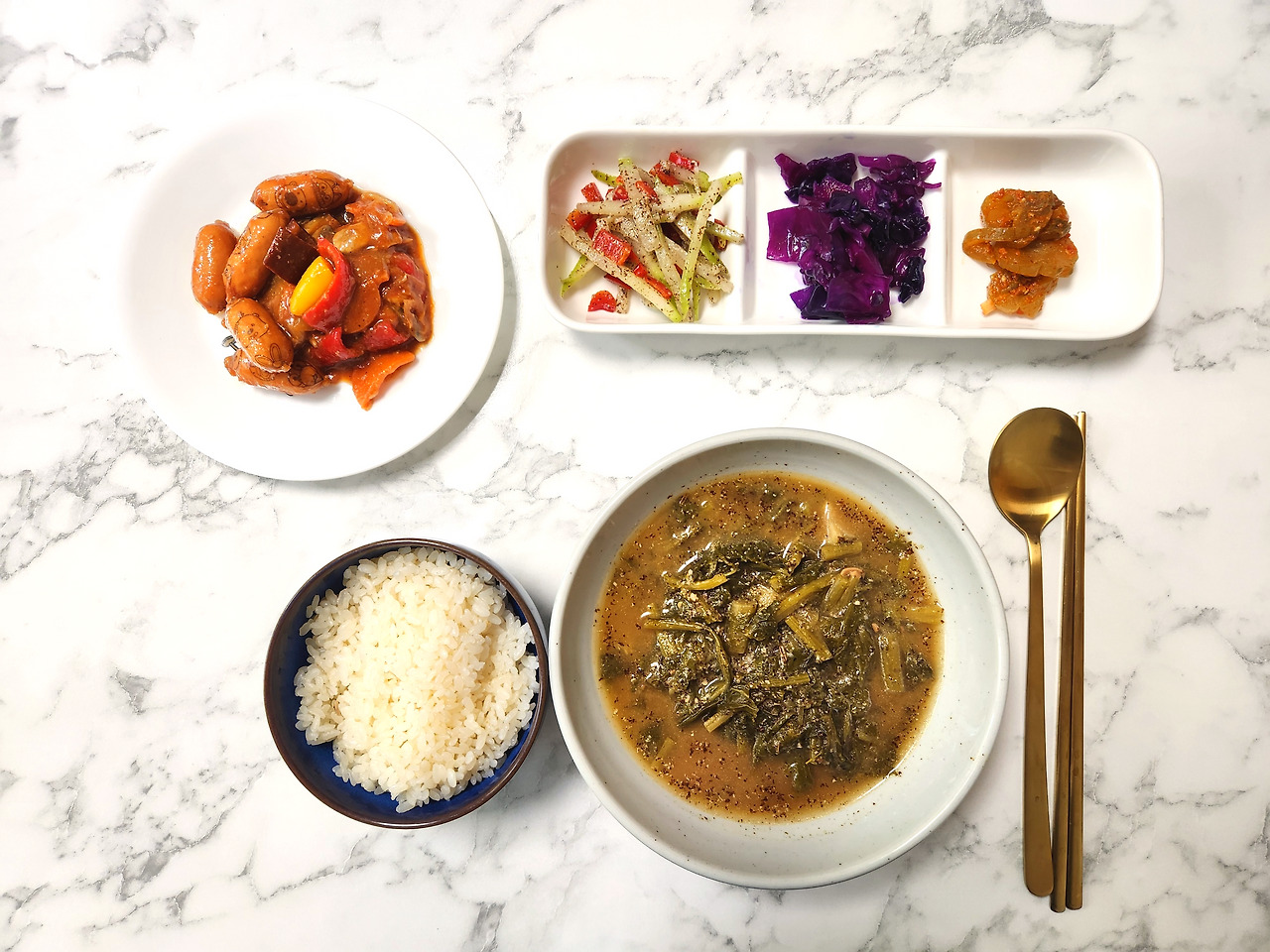 남편이가 좋아하는 들깨우거지국, 곤약쌀밥, 어머님표 오이장아찌와 같이 차렸습니다. 남편은 콩밥도 싫어해서 콩을 걷어내고 주던가 아니면 곤약쌀밥으로 줘야합니다.