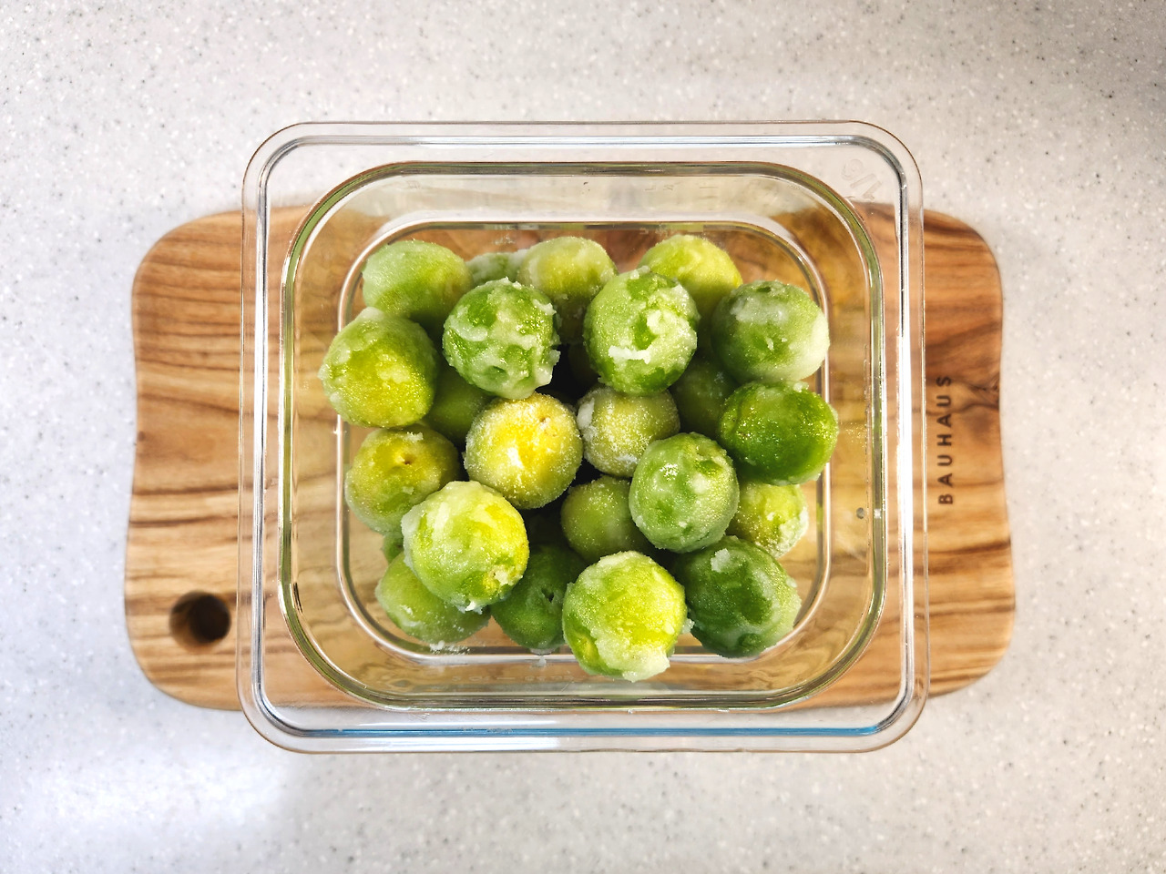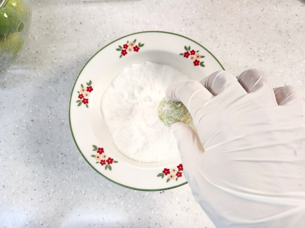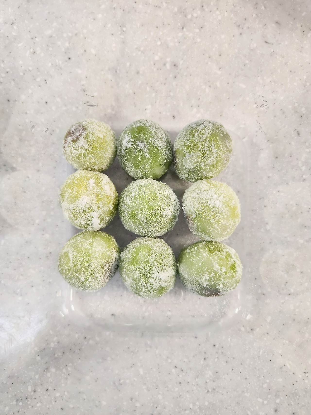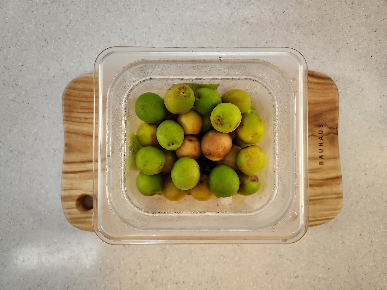 올리고당이나 액상 알룰로스를 매실 겉면에 잘 묻혀주세요. 그런 다음 알룰로스 분말에 굴리면서 매실이 공기 중에 노출되지 않도록 꼼꼼히 발라줍니다.