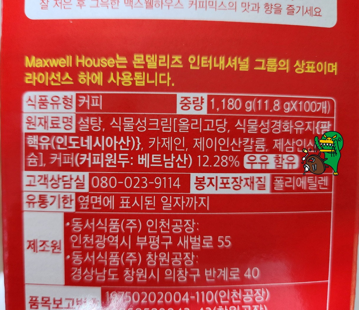 종이컵을 건네 받으면서 믹스커피의 성분들이 얼핏 머리 속을 지나갔다. 커피, 설탕, 식물성경화유. 확실히 생각나는 건 이 3가지 뿐이라 중요성분은 모두 식물성이라고 생각했다. '자주 먹는 것도 아니고 가끔 먹는 건데.' 그런데 그 뒤가 문제였다. 집으로 돌아와서도 강렬한 맛이 잊혀지지 않았다. 남편도 믹스 커피가 먹고 싶다는 말에 한 박스를 주문했고 혼자 있을 때, 심심할 때, 글을 쓰고 싶을 때 몇 번이나 타 마셨다. 그런데 우연히 성분을 확인해본 순간...난 타락한 녀자가 됐다.