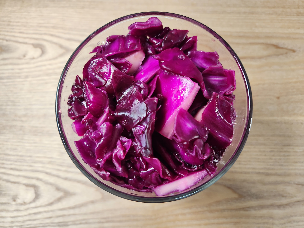 열로 손실 될 수 있는 양배추의 비타민과 무기질 등을 그대로 먹을 수 있어 영양소 섭취에 좋고, 반찬처럼 또는 육류나 다른 메인요리와 쉽게 곁일 수 있어서 적양배추로 만들어 먹으면 영양소를 자주, 쉽게 섭취할 수 있습니다.